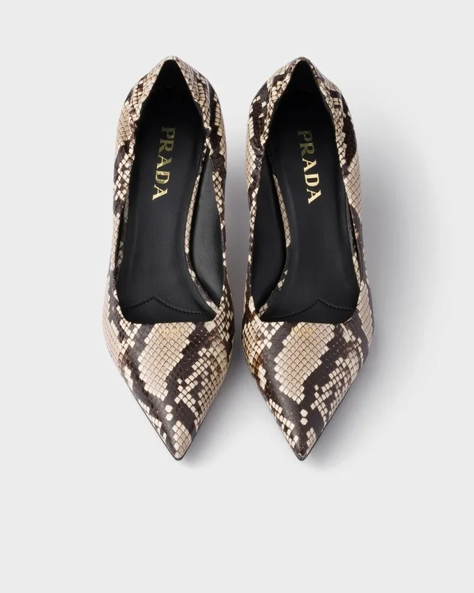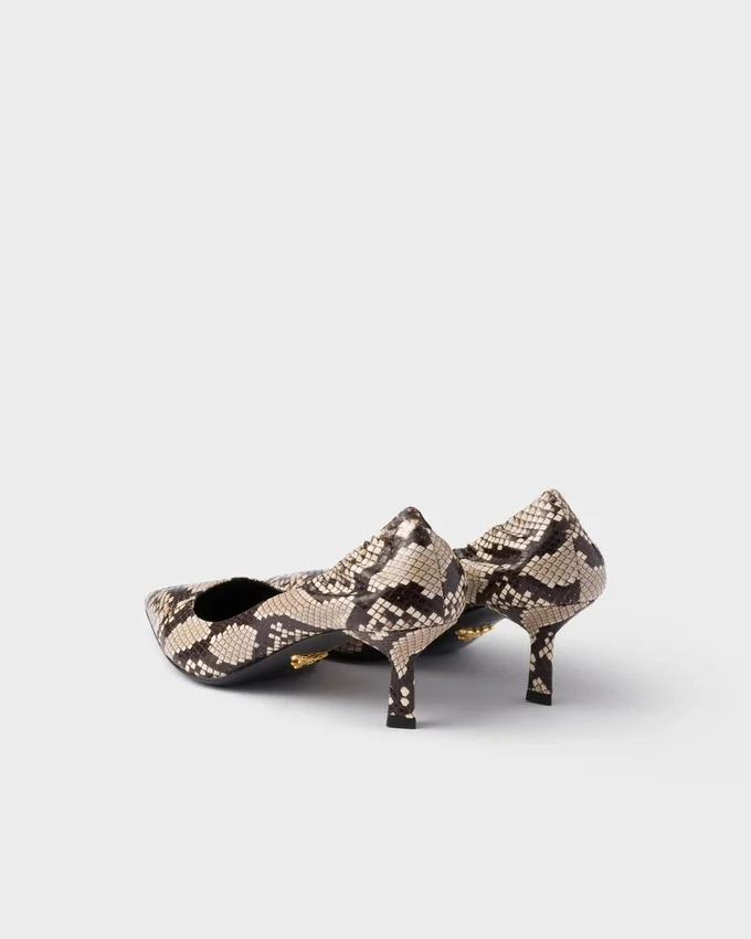 アイヤーズレザーを使用したこのパンプスは、エレガントで先細りのシルエットが特徴です。ポインテッドトゥのスタイルは、象徴的な三角形の幾何学的な形状からインスピレーションを得た洗練されたヒールによって完成されています。