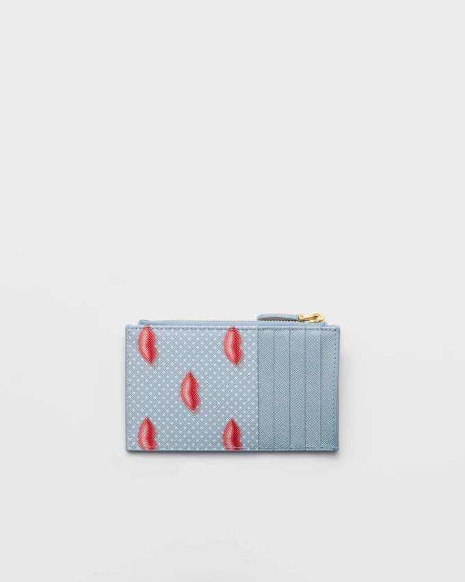 2000年代に初めて登場した「リップス・プリント」は、Pradaの世界観を象徴するモチーフであり、上質なSaffianoレザー製のこのカードホルダーにポップな魅力を添えています。