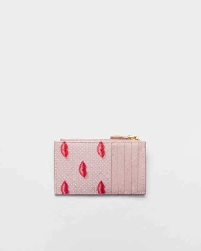2000年代に初めて登場した「リップス・プリント」は、Pradaの世界観を象徴するモチーフであり、上質なSaffianoレザーで作られたこのカードホルダーにポップな魅力を添えています。