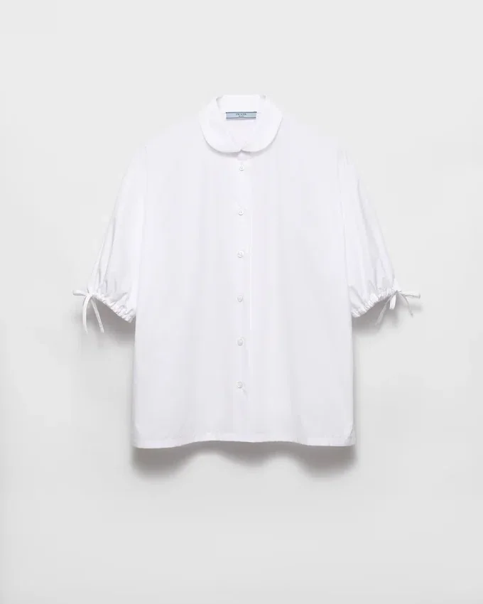 ロマンチックで繊細なディテールが、ヴィンテージの魅力を放つこのシャツのデザインを引き立てています。ショートスリーブのシルエットとストレートなラインが特徴のポプリン素材のシャツには、象徴的な同系色の三角ロゴがあしらわれています。