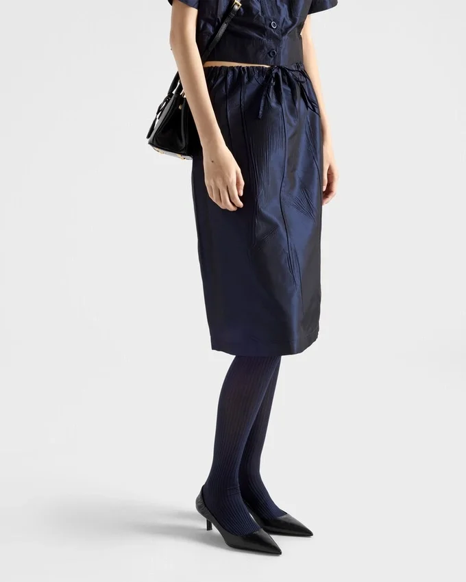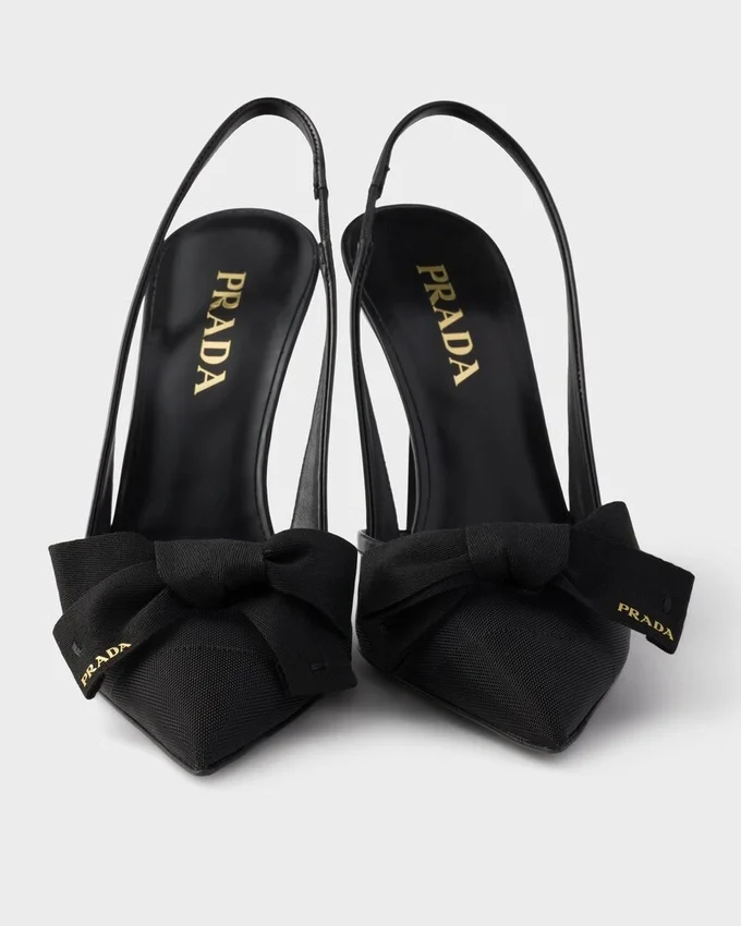 Pradaは、現代の女性らしさの象徴であるクラシックなスリングバックのデザインを新たな素材で再解釈し、レトロなディテールで彩りました。