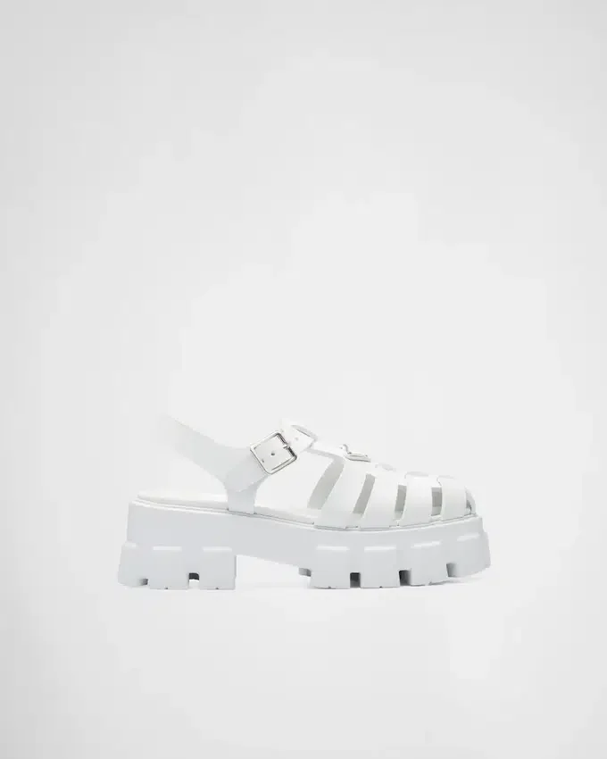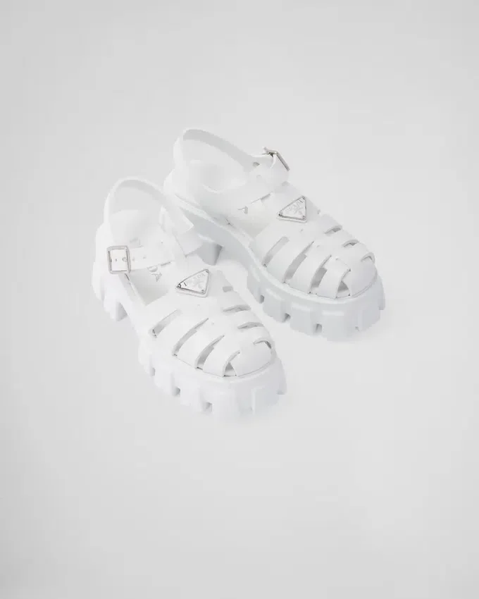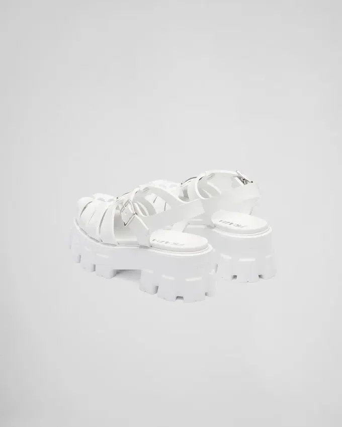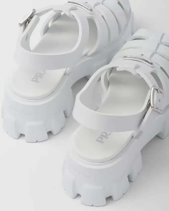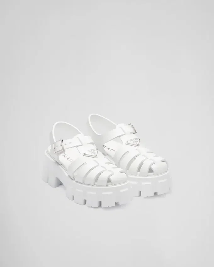 レトロな魅力を持つビーチのシルエットが、このサンダルのデザインにおいて新しく現代的な方法で再解釈されています。重要なボリュームと軽量なラバーを組み合わせた象徴的なMonolithソールが、時代を超えたスタイルをさらに豊かにし、Pradaの二面性を表現しています。このハイブリッドなフットウェアには、特徴的なエナメル加工のメタル製トライアングルロゴがあしらわれています。