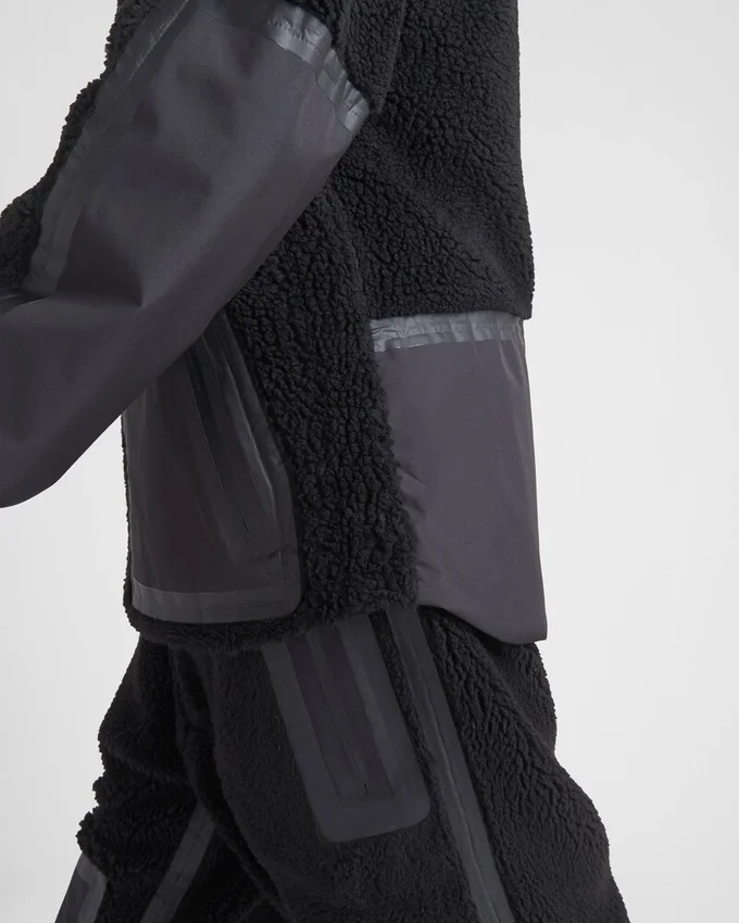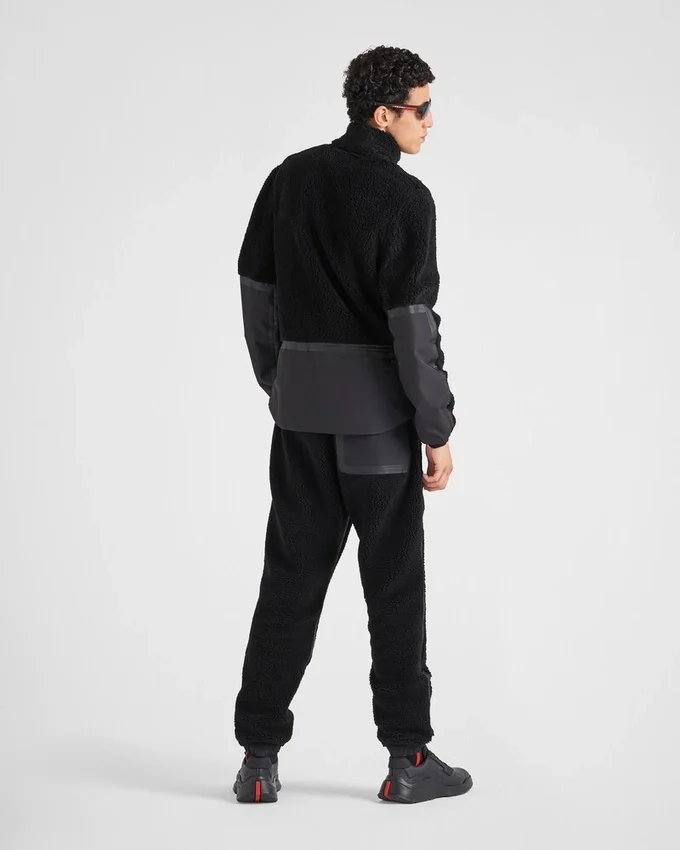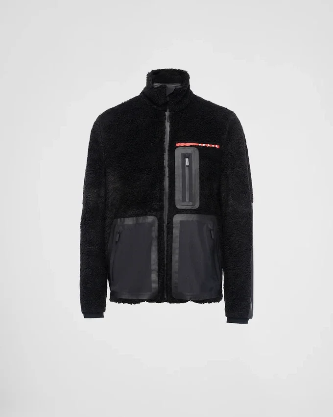 汎用性の高いデザインのこのジャケットは、高い保温性を備えた耐久性のある生地であるリサイクルポリエステル繊維から作られたフリースを使用しています。ワックス加工のディテールが洗練されたスタイルのコントラストを生み出し、ハイブリッドなアクセントを加えています。プラダ リネア・ロッサのロゴがアイテムを彩ります。