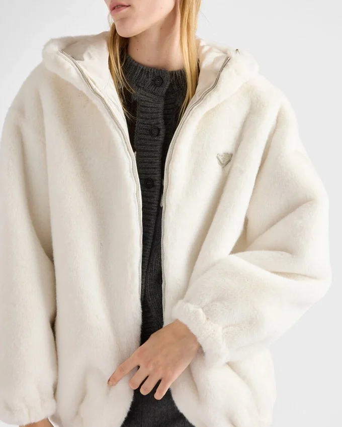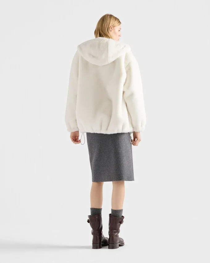 洗練されたディテールを備えた、スポーティーで快適なこのウェアは、柔らかく冬らしい質感で彩られています。多用途で機能的なスタイルのリバーシブルフード付きウェアには、エナメル加工された金属製の三角ロゴがあしらわれています。
