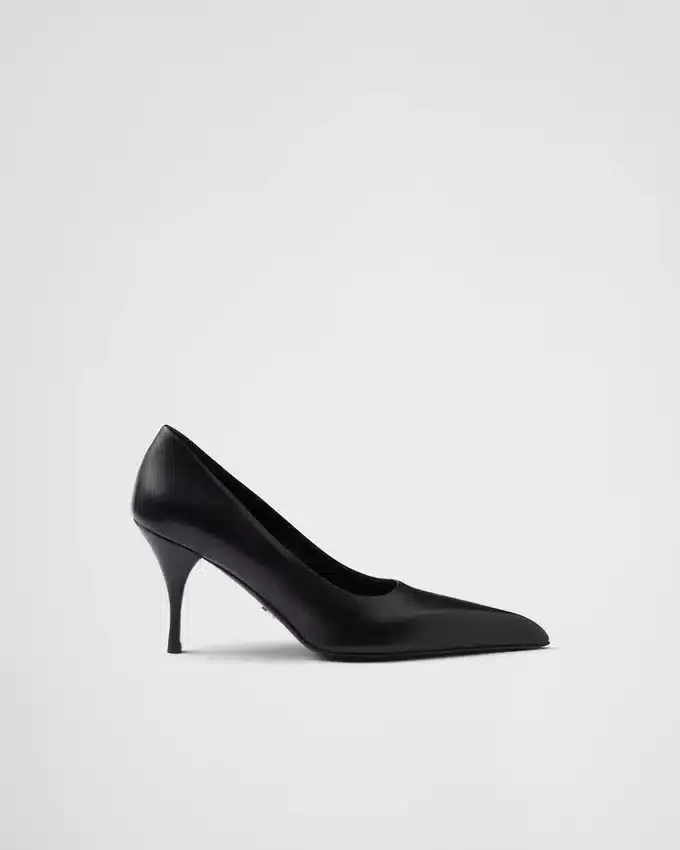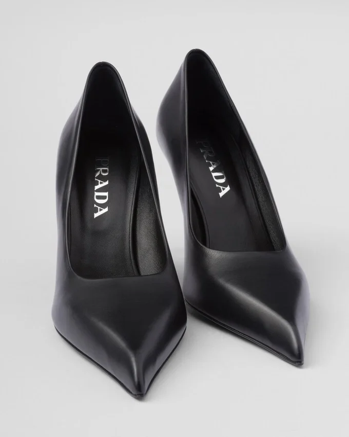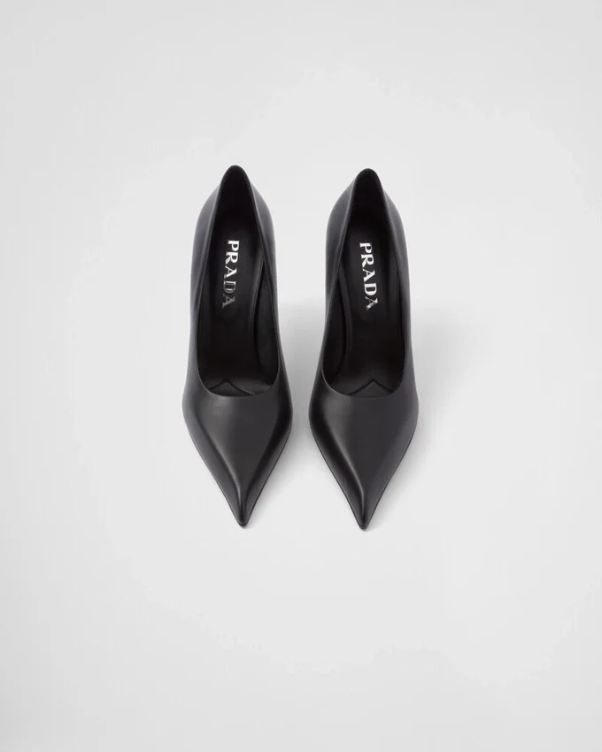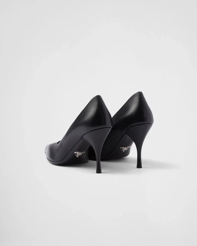 洗練されたフェミニンなデザインのこのレザーパンプスは、時代を超えたシルエットを現代的に再解釈したものです。 このスタイルは、尖ったアッパーから先細りのヒールへと続く、大胆で伸びやかなラインが特徴です。洗練されたシンプルなフォルムは、光沢のあるサテン仕上げによって引き立てられ、モダンで洗練された雰囲気をシューズに添えています。