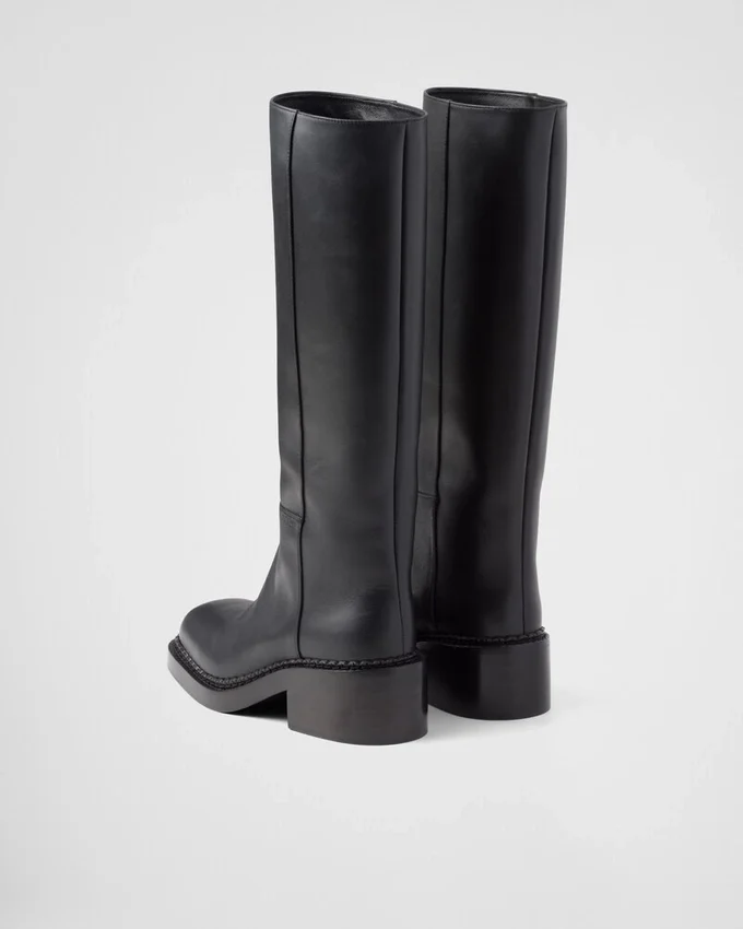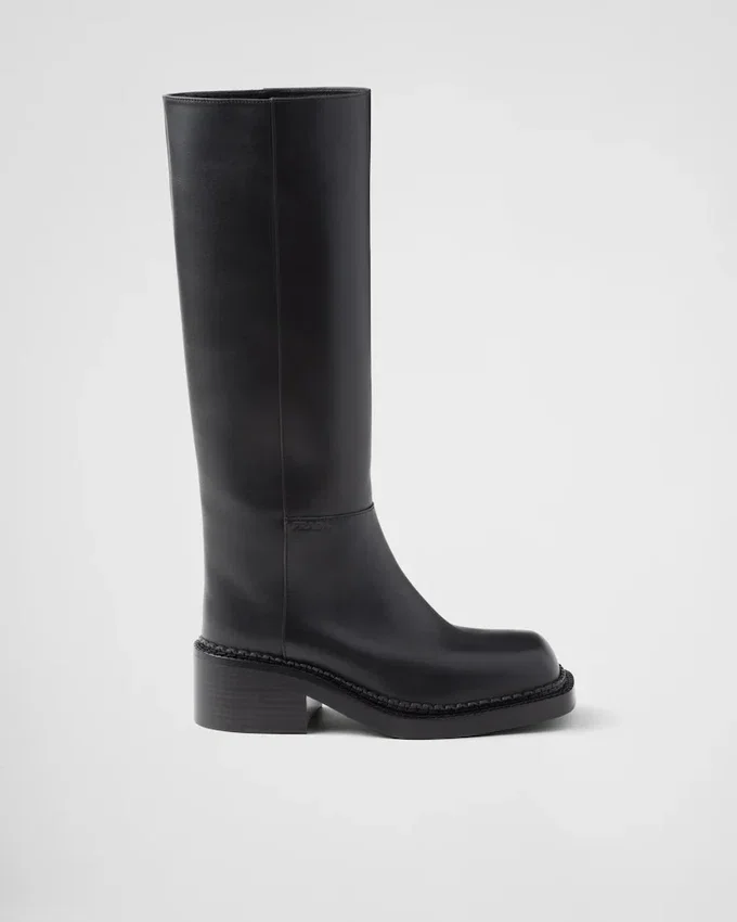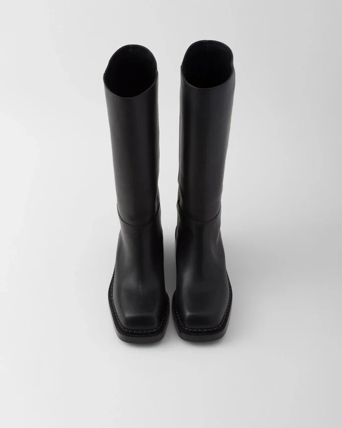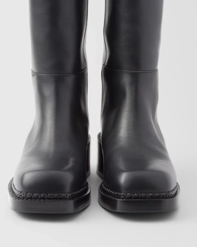 レトロなディテールと現代的なラインの融合が、このレザーブーツのシルエットを特徴づけています。過去と現在の境界を曖昧にする、二つの美学の表現です。