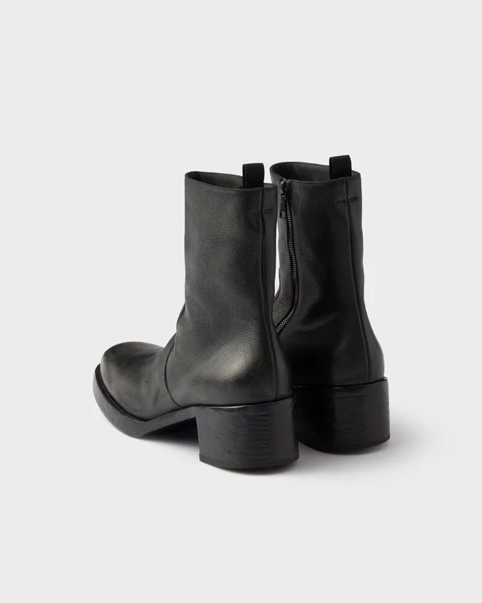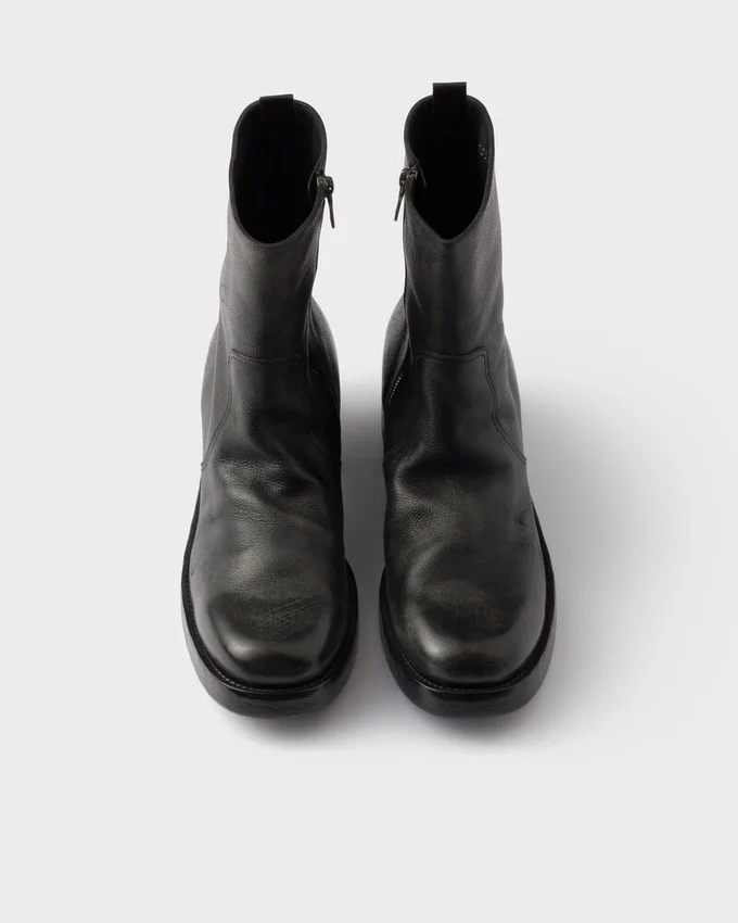 構造と流動性のバランスを追求したこのブーティは、70年代のフットウェアの大胆なスタイルを、現代的なラインと革新的なディテールで再解釈しています。ユニークな組み合わせが際立つデザインは、ボリューム感を強調したラウンドトゥから、スリムなブーツレッグへと続くシルエットが特徴です。 エイジドレザーが靴に深みと唯一無二の個性を与え、本物で直感的なスタイルを表現しています。