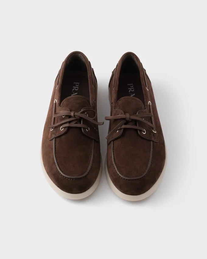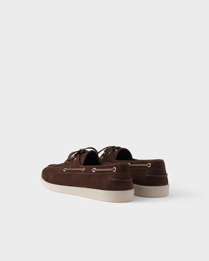 このモダンで洗練されたボートシューズはスエード製で、繊細なディテールと職人の手による仕上げが施されています。