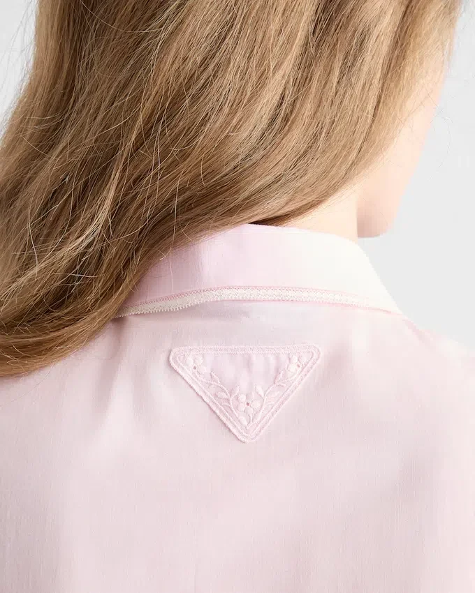 ロマンチックで繊細なバティストシャツは、軽やかなクロップドシルエットが特徴です。刺繍、ルッチング、レースのディテールが、この洗練されたフェミニンな一着を彩ります。