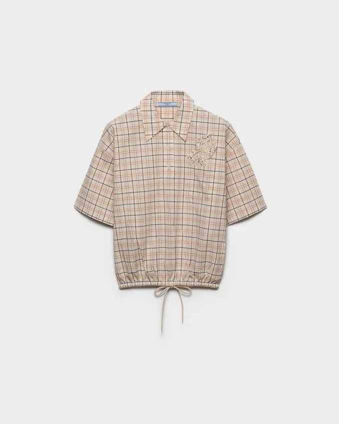 刺繍入りチェック柄ポプリントップス