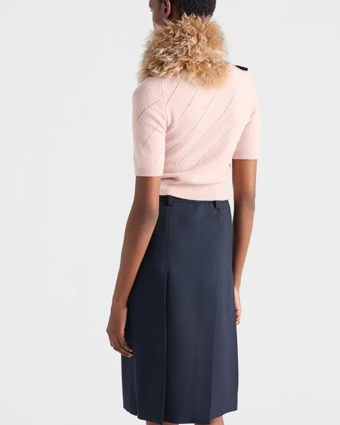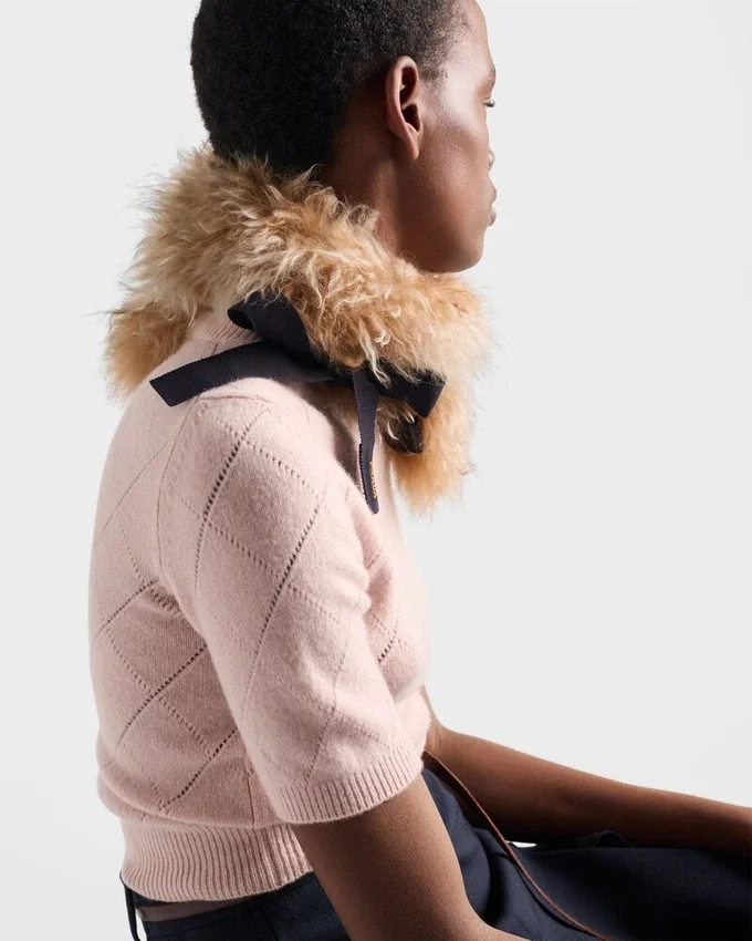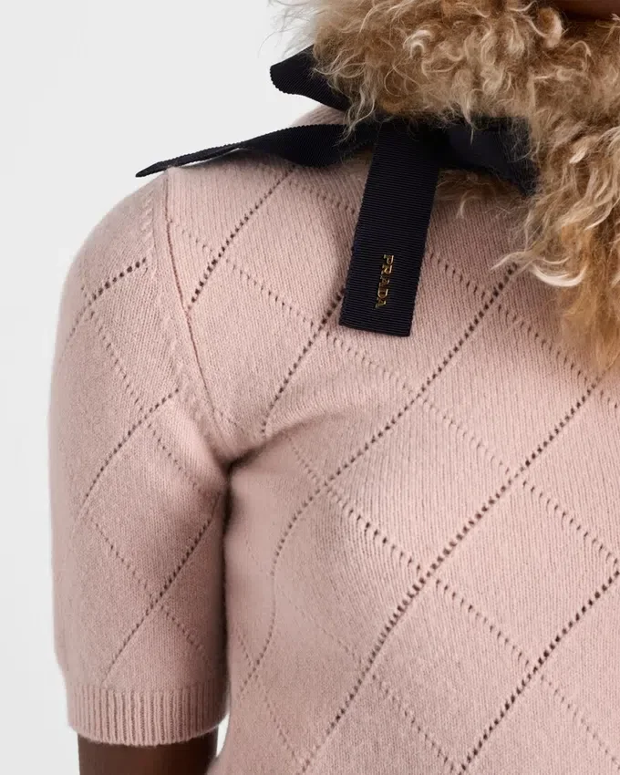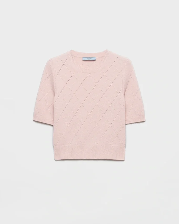 洗練された透かし編みのモチーフが、このセーターにエレガントで繊細な魅力を添えています。カシミアの柔らかな肌触りが、デザインに快適で洗練された印象を与えています。