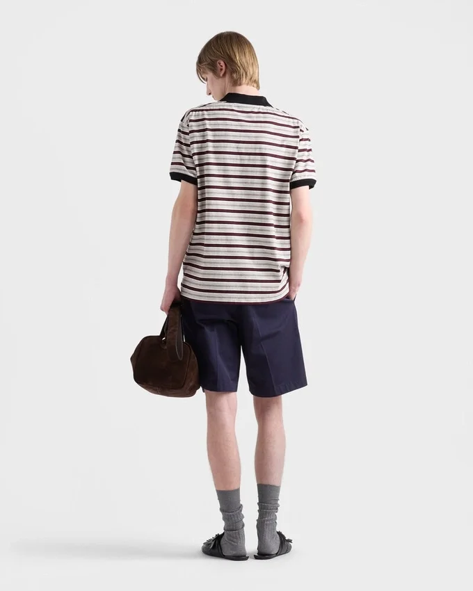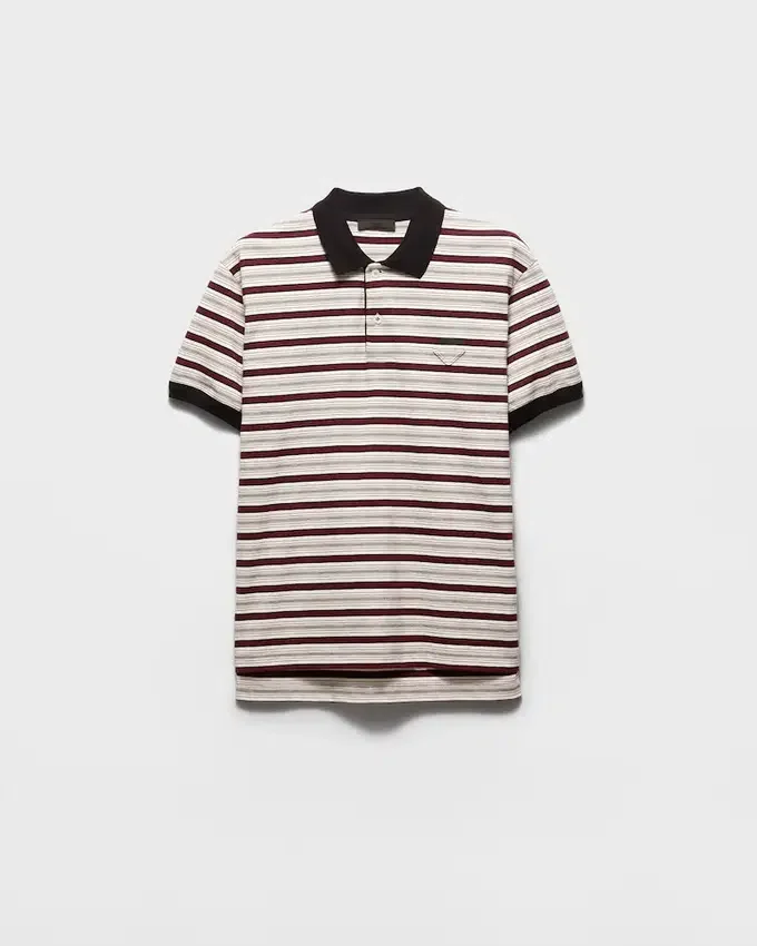 このコットンポロシャツは、レトロな魅力あふれるストライプ柄がアクセントとなったクラシックなシルエットが特徴です。