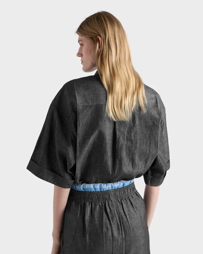 ワークウェアを、現代的なラインと洗練されたディテールを通じてミニマルに再解釈しました。ボックスシルエットのこの半袖シャツは、シャンブレー生地を使用しており、軽やかな着心地と洗練された美しさを兼ね備えています。