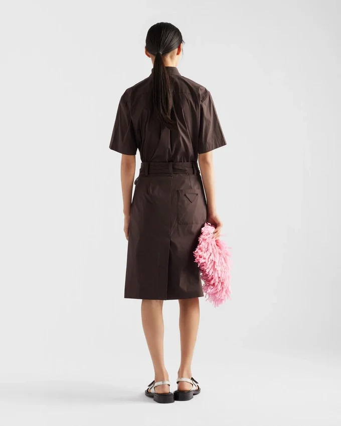 このポプリンシャツは、メンズウェアのラインを取り入れたカジュアルなシルエットが特徴です。半袖とクラシックな襟が特徴のオーバーサイズフィットは、同系色のトライアングルロゴで仕上げられています。