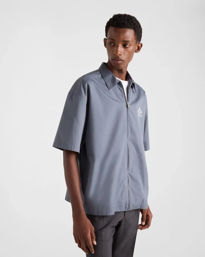 このテクニカルコットンシャツは、ワークウェアのディテールを洗練された美学で再解釈したボックスシルエットが特徴です。ジッパー開閉が特徴の半袖スタイルは、コントラストカラーのプリントされたアーカイブロゴで仕上げられています。
