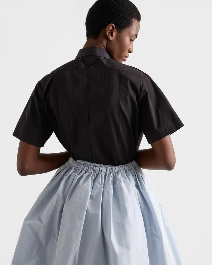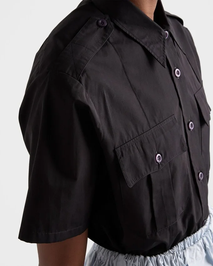 実用性とカジュアルな雰囲気を兼ね備えたこのシャツは、半袖とストレートカットが特徴です。ユーティリティスタイルにインスパイアされたディテールが、コットンポプリン素材のデザインを引き立てています。