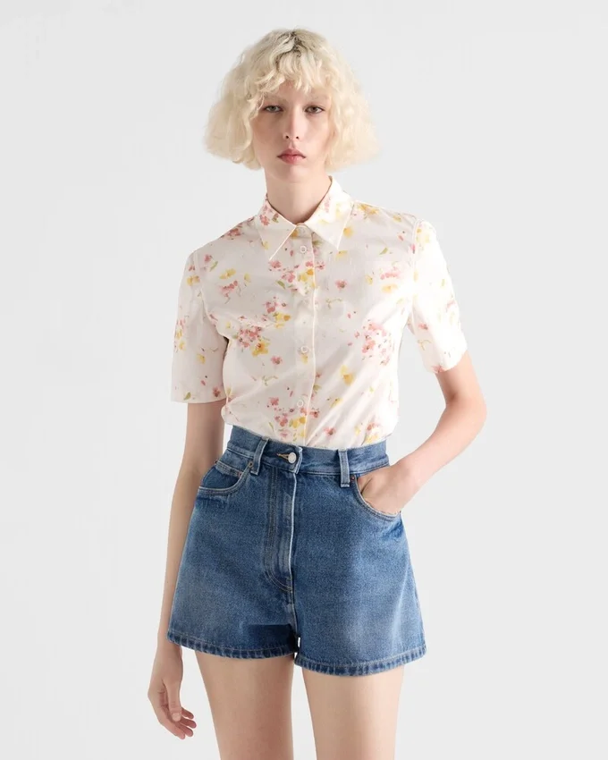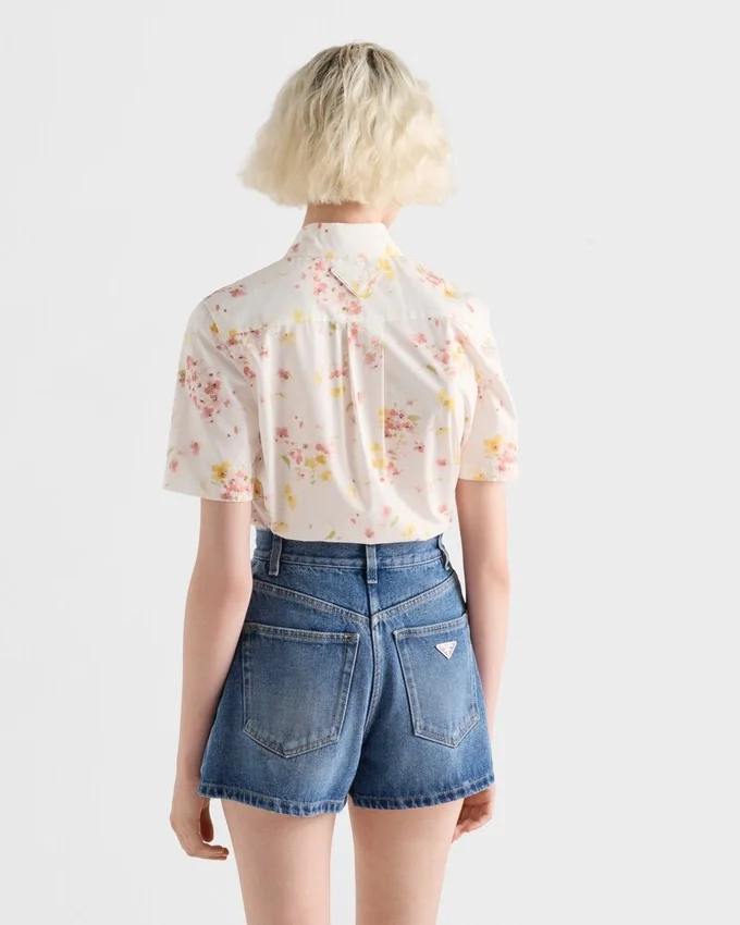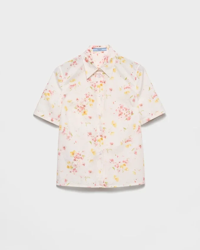 繊細な花柄プリントが、すっきりとしたシルエットのこの半袖シャツを彩ります。ポプリン素材のこの一着は、ロマンチックで洗練されたスタイルを体現しています。