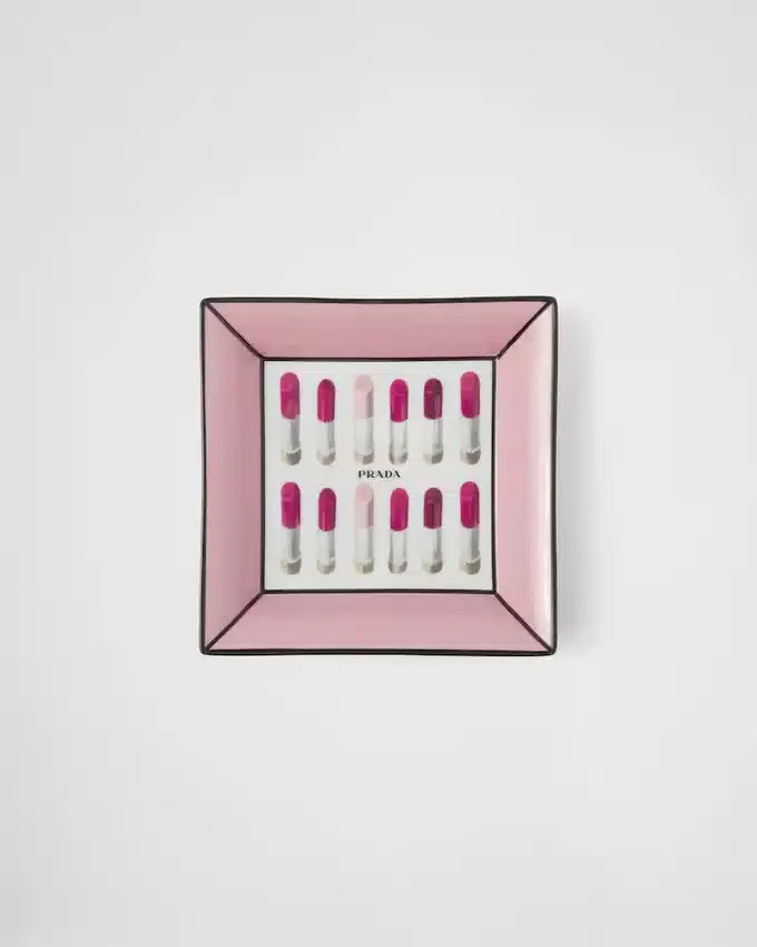 2000年春夏コレクションのために生み出された、象徴的な「リップスティック」プリントが、洗練されたラインを持つこの小物トレイのデザインを引き立てています。上質な磁器で作られた、洗練された多用途なこのアイテムは、モダンなエレガンスを空間に添えます。