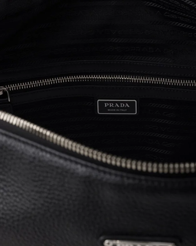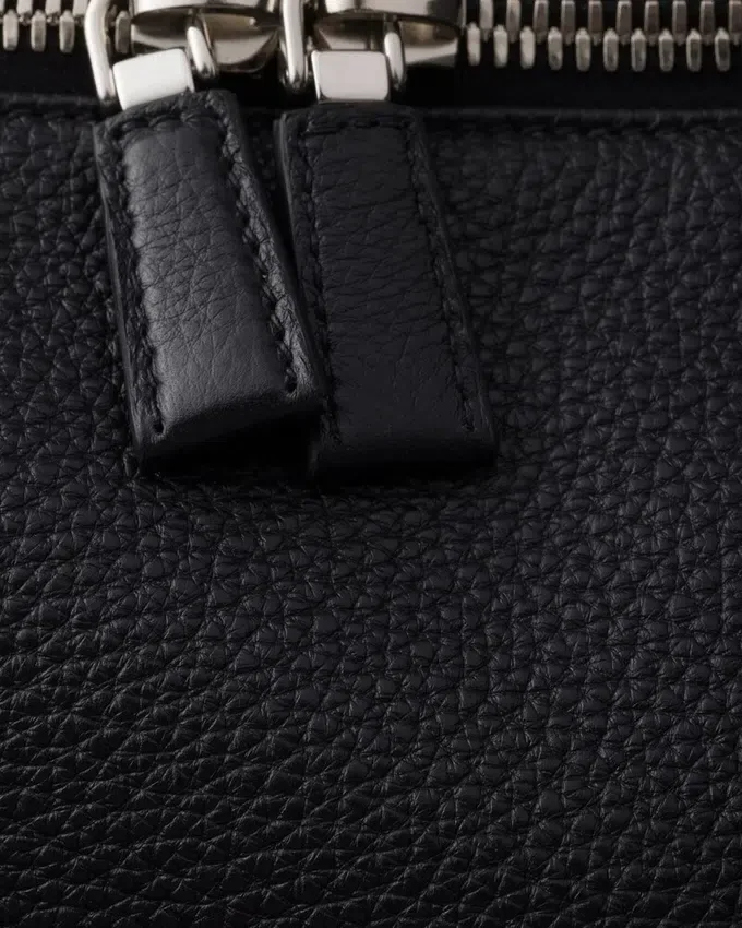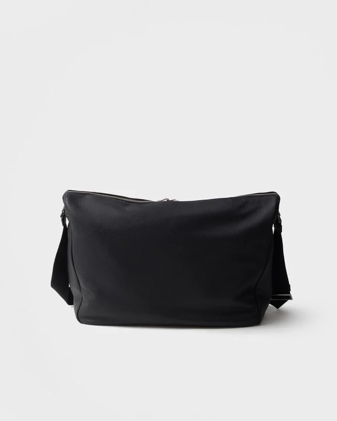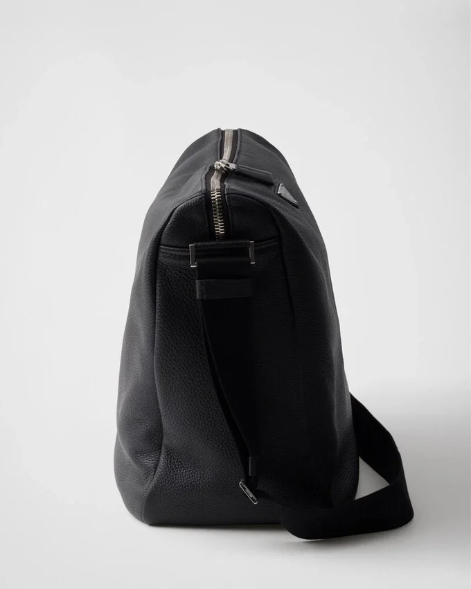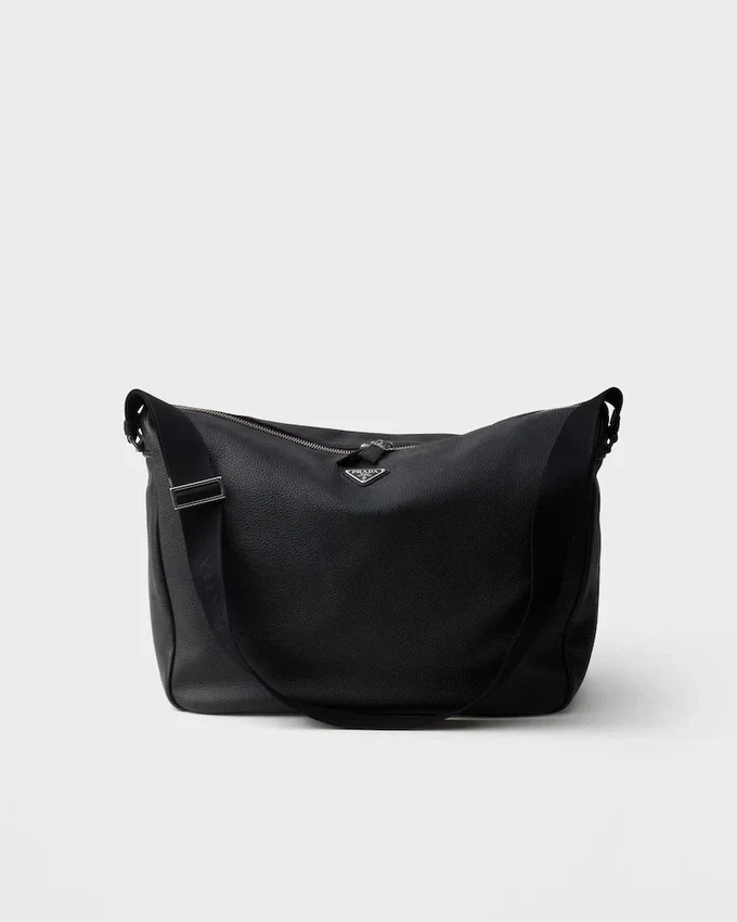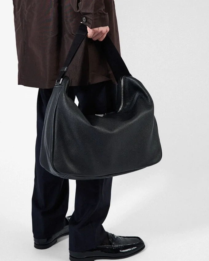 この現代的で実用的なレザーバッグは、柔らかなシルエットと洗練されたディテールが特徴です。