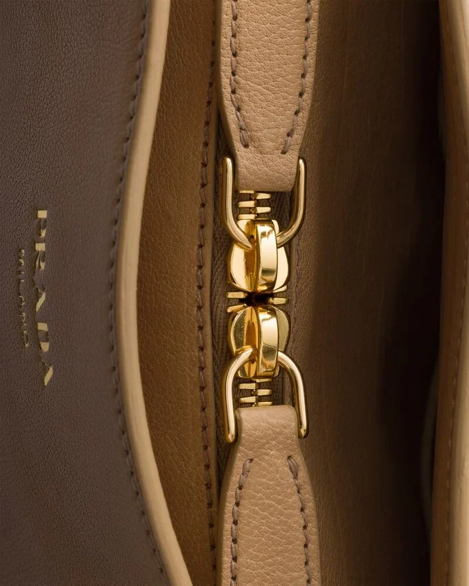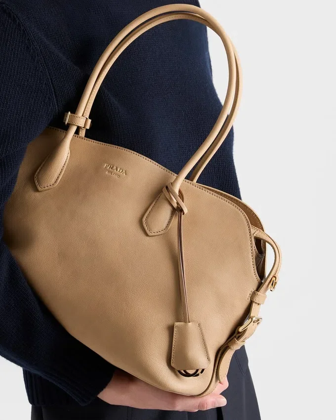 洗練されたデザインと力強い個性を兼ね備えたこのバッグは、シンプルで実用的な新しいエレガンスを提案します。柔らかなフォルムは、自然でカジュアルな雰囲気を醸し出す、小さくて不規則な木目模様のあるレザーで作られています。