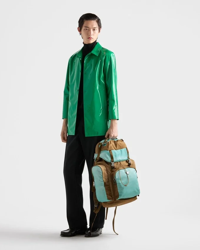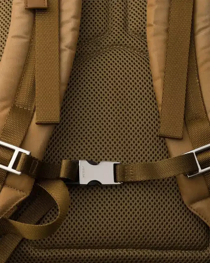 「形と機能の関係性」の探求からインスピレーションを得た、マルチポケットデザインのツートーンバックパック。アーカイブライン、機能的な要素、そしてテクニカルなディテールの意外な組み合わせが特徴で、アクティブなライフスタイルに合わせてデザインされています。 彫刻のような立体感を持つ本体は、アンティーク加工を施したRe-Nylon製です。手作業による特殊な加工技術で生地の特定部分を明るくすることで、自然な奥行きと繊細な光の戯れを生み出しています。 製品の特徴を保ち、マイクロファイバーの抜け落ちを抑えるためのサステナブルなケアとして、頻繁な洗濯は避けてください。使用後は毎回風通しの良い場所で乾かし、ラベルに記載された洗濯表示に従ってください。