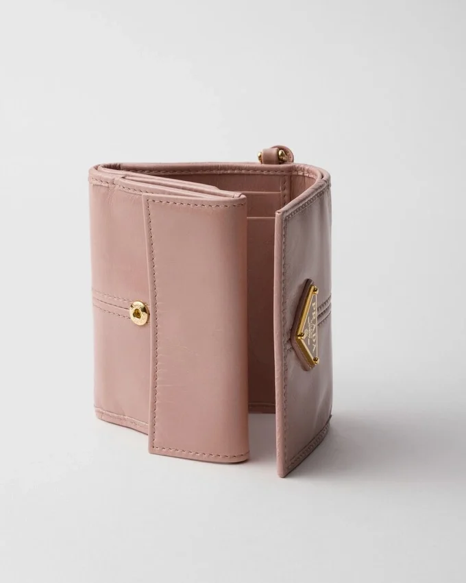 エナメル加工された金属製の三角ロゴをあしらったこの小型レザーウォレットは、モダンで洗練された雰囲気を醸し出しています。その洗練されたディテールと精巧な職人技により、時代を超えたアクセサリーとなっています。