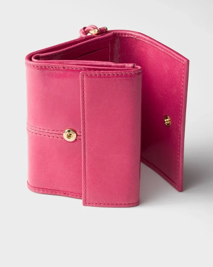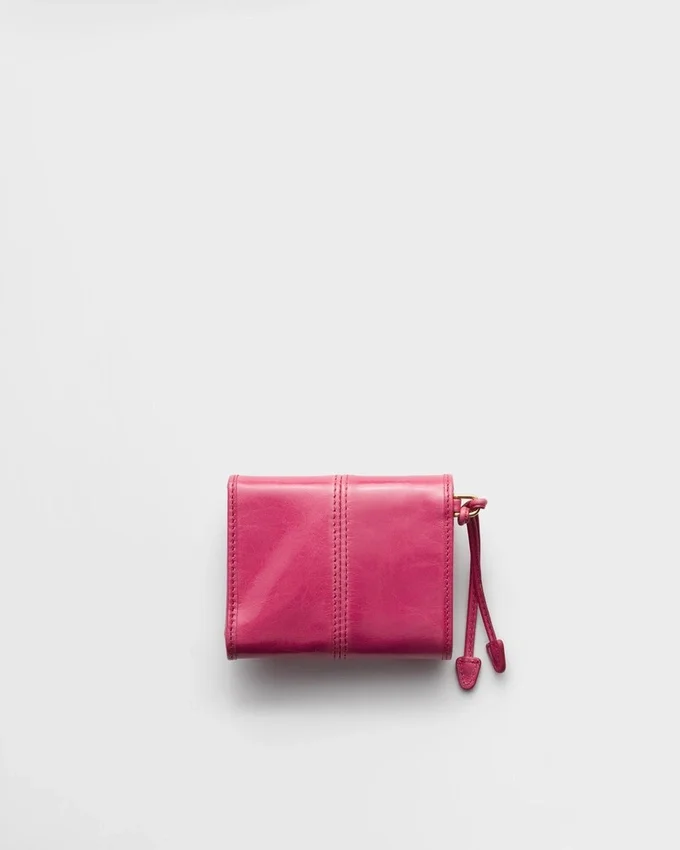 エナメル加工された金属製の三角ロゴをあしらったこの小型レザーウォレットは、モダンで洗練された雰囲気を醸し出しています。その洗練されたディテールと精巧な職人技により、時代を超えたアクセサリーとなっています。