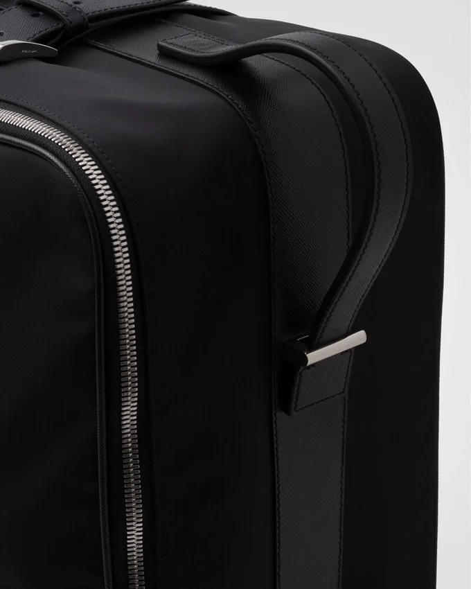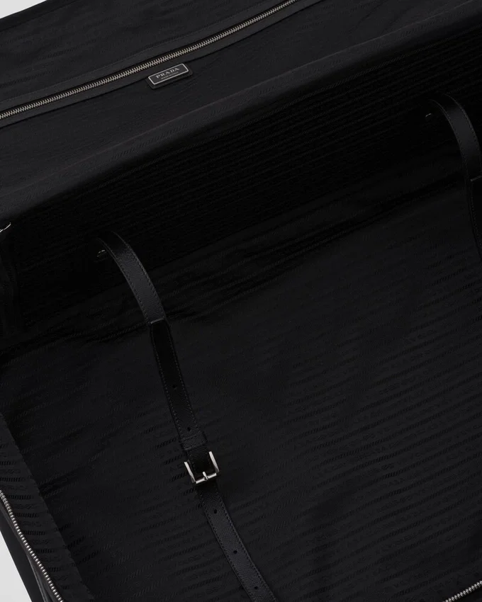 Saffianoレザーのディテールが施されたこのスーツケースのデザインは、魅力的でヴィンテージなディテールと、Re-Nylonのモダンで実用的な特徴が見事に融合しています。 レザーハンドルと2つのキャスターが特徴的なセミリジッドなシルエットは、エナメル加工された金属製の三角ロゴという象徴的なシグネチャーによって完成されています。製品の特徴を保ち、マイクロファイバーの抜け落ちを抑えるためのサステナブルなケアとして、頻繁な洗濯は避けていただくことをお勧めします。使用後は毎回風通しの良い場所で乾かし、専門のエコドライクリーニング店にてドライクリーニングを行ってください。
