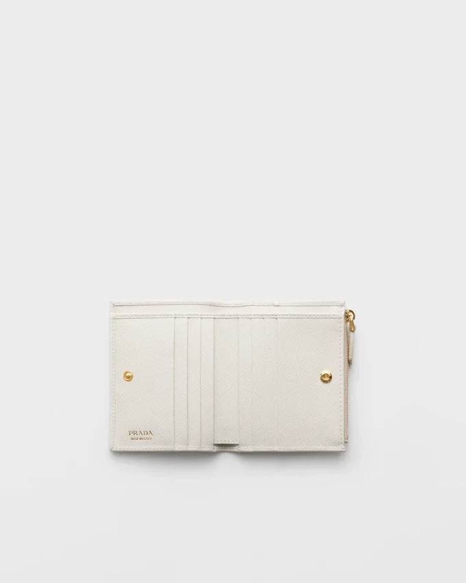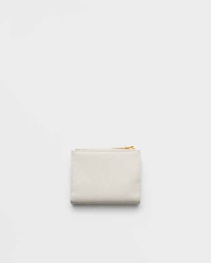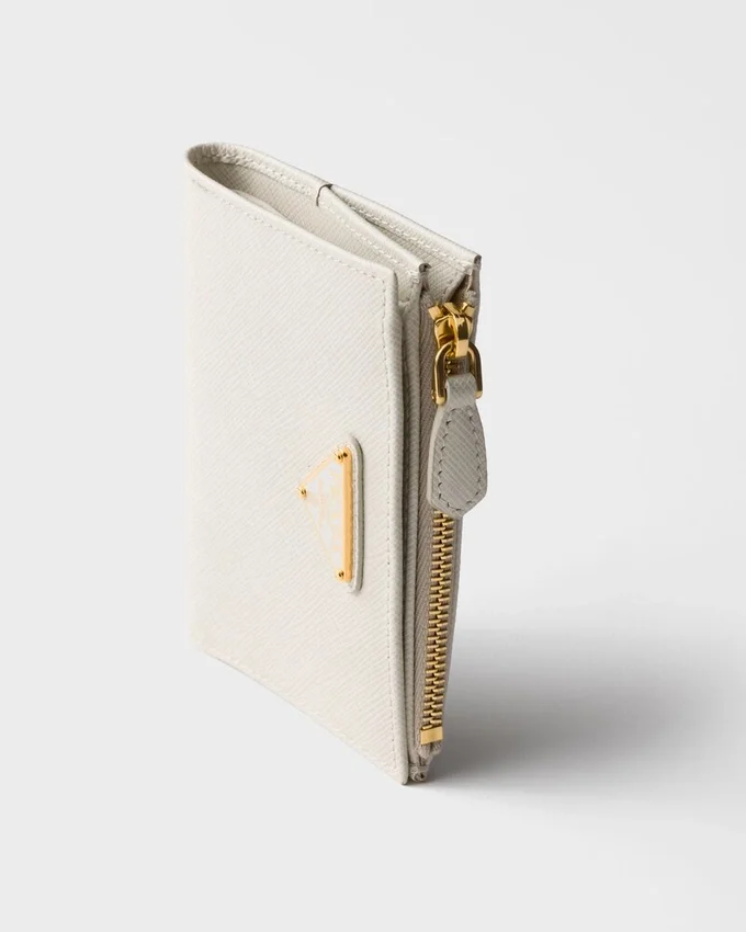 エナメル加工された金属製の三角ロゴをあしらったこのSaffianoレザーの財布は、洗練されたエレガントなデザインです。すっきりとしたラインが特徴のこのアイテムには、ファスナー付き小銭入れ、紙幣入れ、カードスロットが備わっています。<!–商品コード:1Ml050_Qhh_F0K74