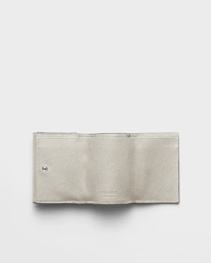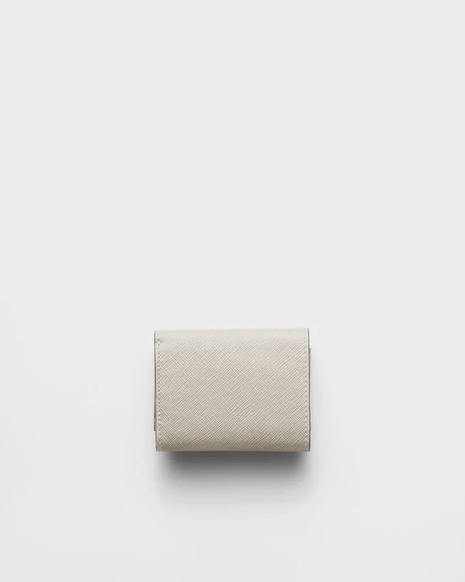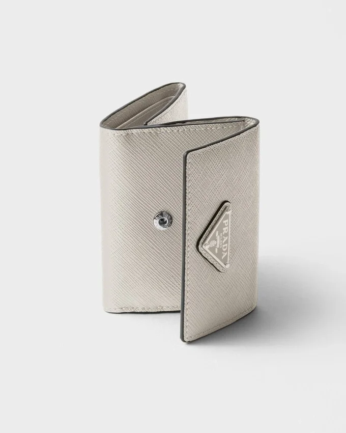 洗練されたラインとSaffianoレザーの象徴的な質感が特徴のこのウォレットは、前面に三角形のロゴがあしらわれています。内部にはポケットと仕切りが備わっています。