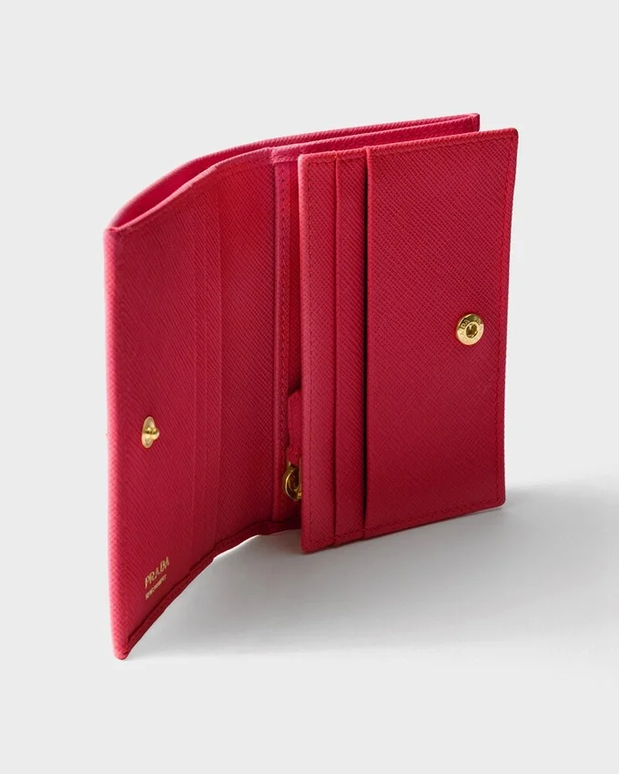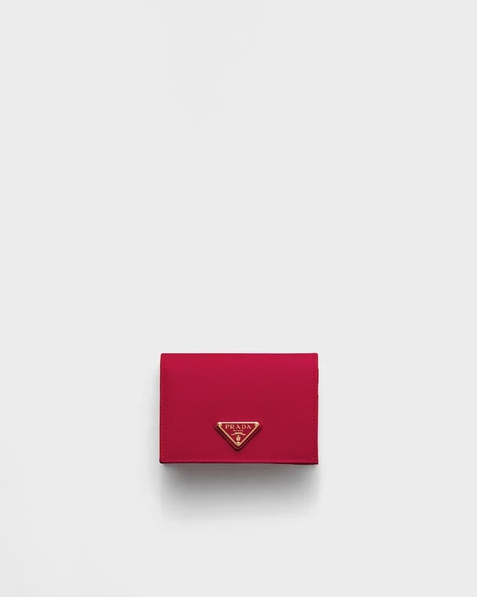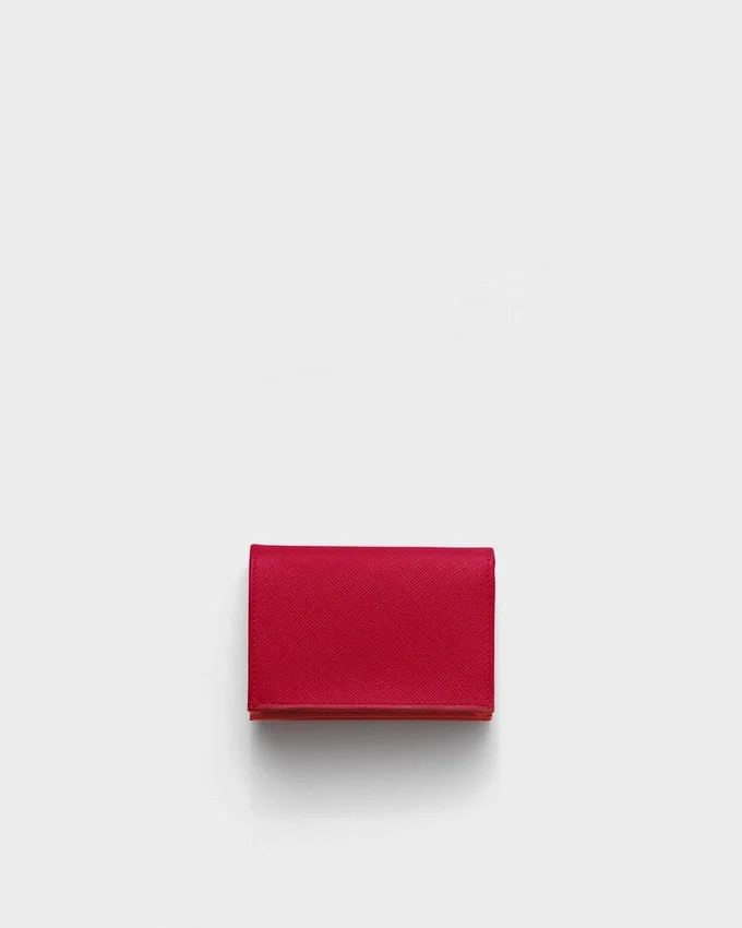 エナメル加工された金属製の三角ロゴをあしらったこのSaffianoレザーの財布は、洗練されたエレガンスを表現しています。すっきりとしたラインのこのアクセサリーには、ジッパー付き小銭入れ、紙幣入れ、4つのカードスロットが備わっています。