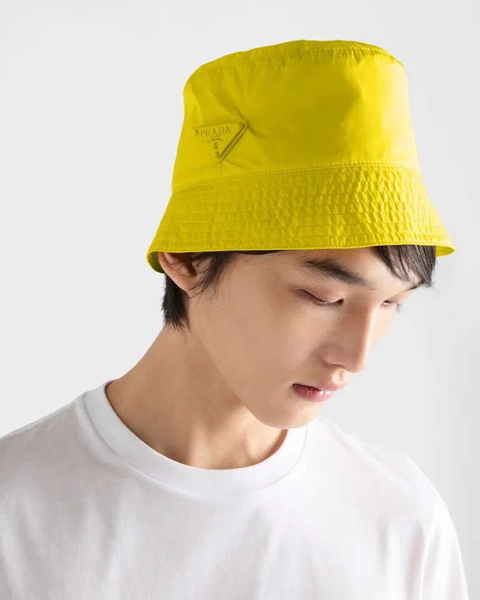 Pradaの世界観を象徴するアクセサリーであるこの「Re-Nylon」バケットハットは、実用的なミニマリズムと革新性を融合させた都会的なデザインが特徴です。 軽量なこのアクセサリーは、専用のポーチに折りたたんで収納でき、鮮やかなカラーバリエーションで展開されています。トライアングルロゴとトーン・オン・トーンのディテールが、現代的なアクセントを加えています。製品の特徴を保ち、マイクロファイバーの抜け落ちを抑えるため、頻繁な洗濯は避けてください。使用後は風通しの良い場所で乾かし、ラベルに記載された洗濯表示に従ってください。