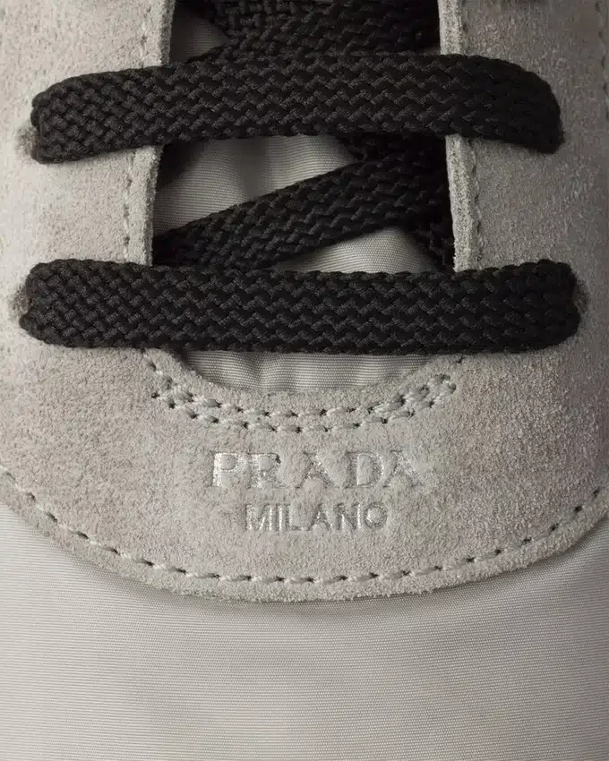 Re-Nylonとスエードレザーを使用した、構造的なデザインが特徴の驚くほど軽量なスニーカーです。素材の組み合わせが、Pradaのスポーティで職人技あふれる精神を体現しています。フラットソールにはサイドに伸縮素材が施されており、簡単に履き脱ぎできます。本製品は「Sea Beyond」教育プログラムの対象外です。