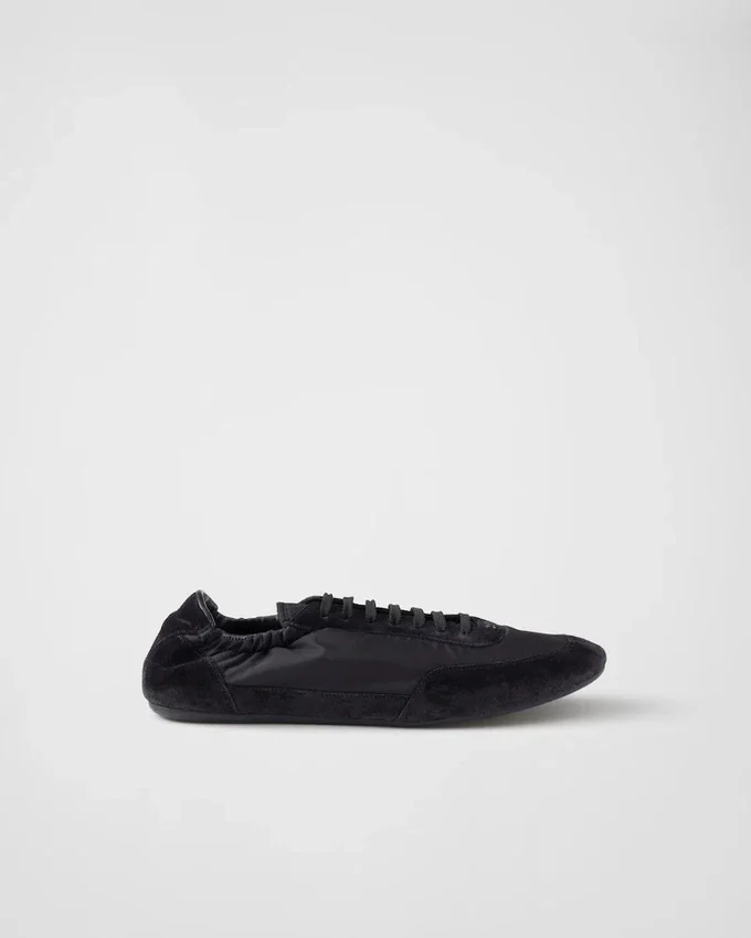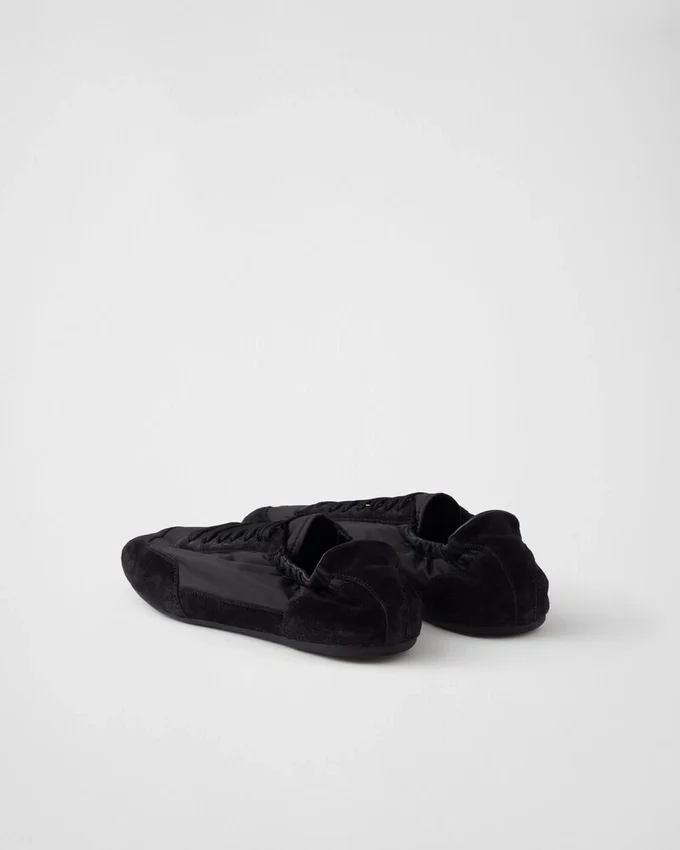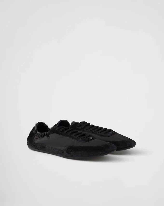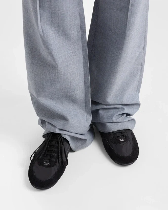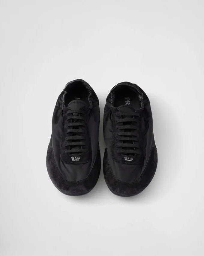 Re-Nylonとスエードレザーを使用した、構造的なデザインが特徴のこの驚くほど軽量なスニーカーは、Pradaのスポーティで職人技あふれる精神を体現する素材の組み合わせが特徴です。フラットソールはサイドに伸縮素材が施されており、簡単に履き脱ぎできます。本製品は「Sea Beyond」教育プログラムの対象外です。