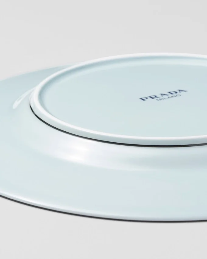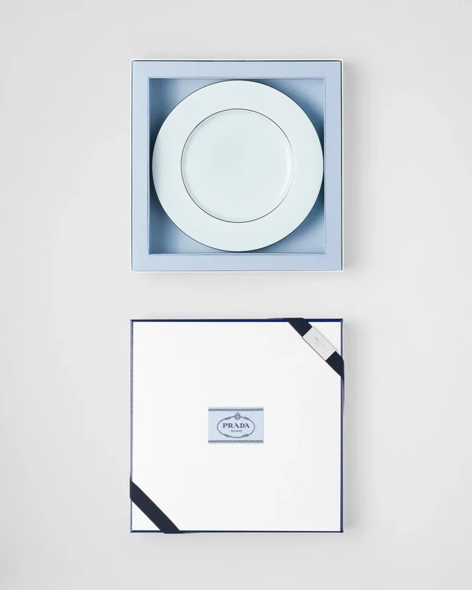 極上の釉薬を施した磁器で作られたこのディナープレートは、職人の技とPRADAの美学を融合させた、洗練されたモダンなデザインが特徴です。日本の古式青磁からインスピレーションを得たこのセットは、手描きで施された縁の装飾が際立つ、アイコニックで繊細な色合いが魅力です。