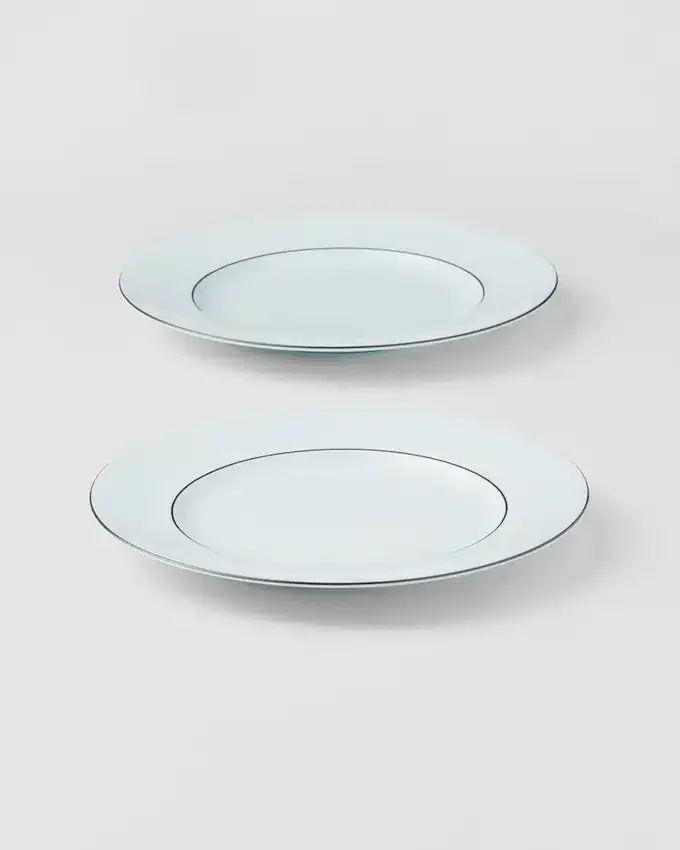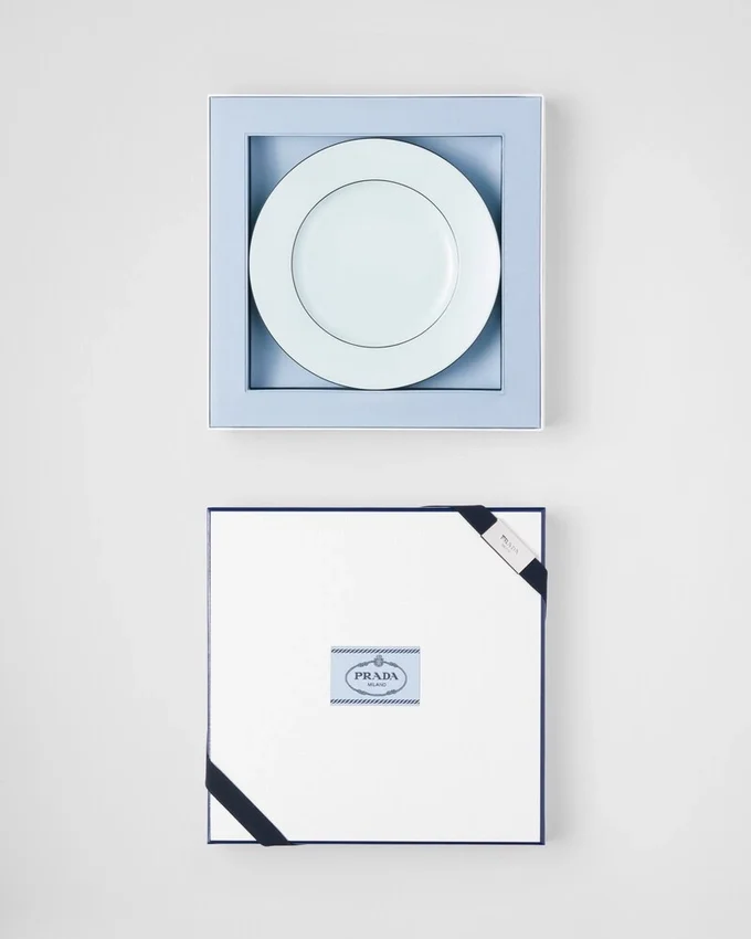 極上の釉薬を施した磁器で作られたこれらのデザートプレートは、職人の技とPRADAの美学を融合させた、洗練されたモダンなデザインです。日本の古式青磁からインスピレーションを得たこのセットは、手描きで施された縁取りが彩りを添える、象徴的で繊細な色合いが特徴です。