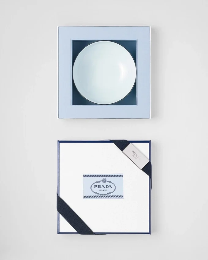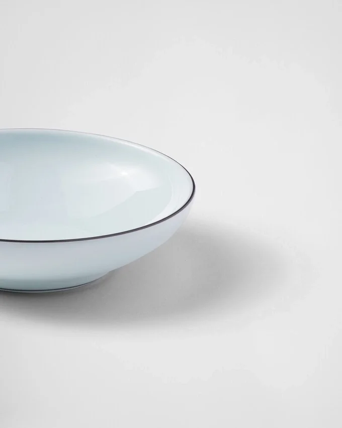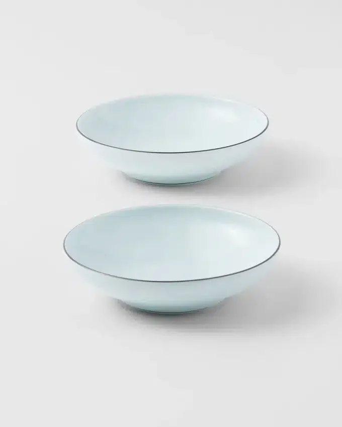 極上の釉薬を施した磁器で作られたこれらのボウルは、職人の技とPRADAの美的コードを融合させた、洗練されたモダンなデザインです。日本の古式青磁からインスピレーションを得たこのセットは、手描きで施された縁取りが彩りを添える、象徴的で繊細な色合いが特徴です。