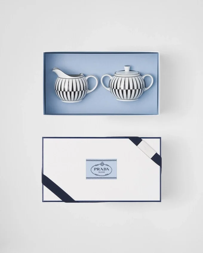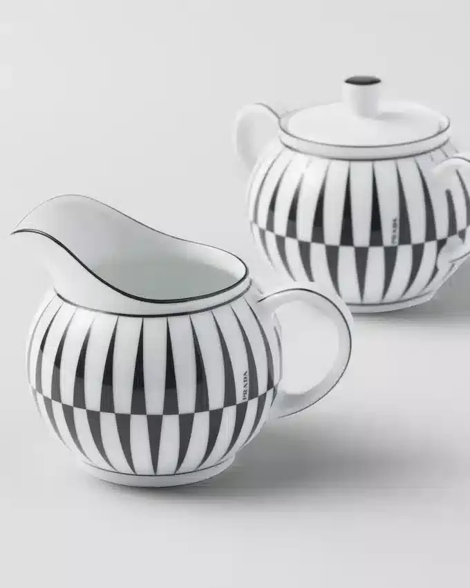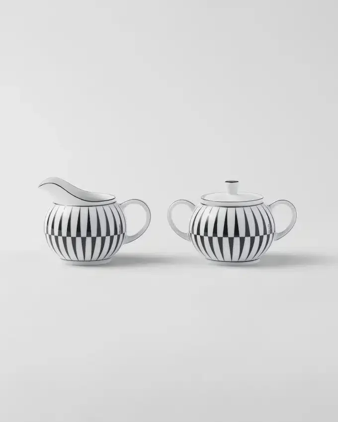 このモチーフは、ミルクジャグとシュガーボウルで構成された、極上の磁器を使用した洗練されたモダンなセットを彩り、対照的なパターンと組み合わせることで、意外性があり洗練された食卓を演出します。