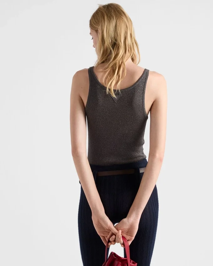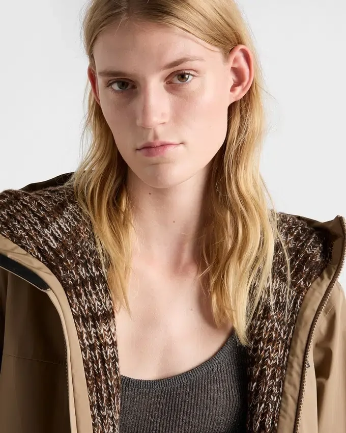 ミラノのヴィットーリオ・エマヌエーレ2世GalleriaにあるPradaの歴史ある店舗の大理石の床から着想を得た、象徴的なチェッカーボード柄が、1950年代のイタリアのキネティックアートを彷彿とさせるダイナミックなグラフィックプリントで再解釈されています。