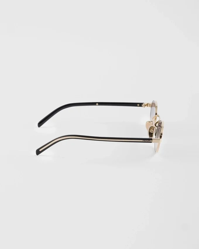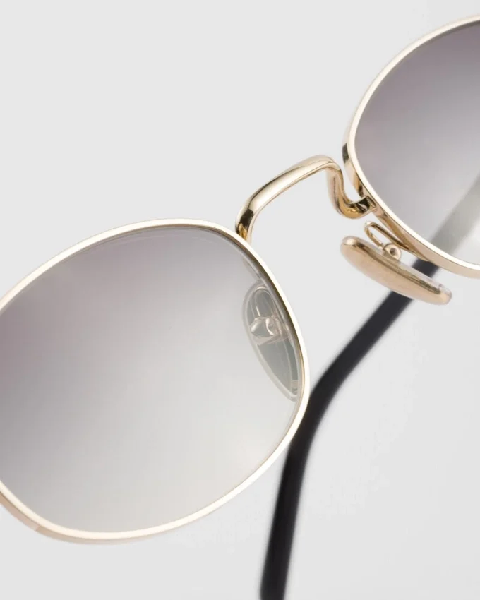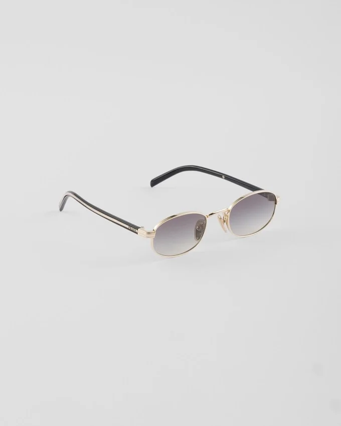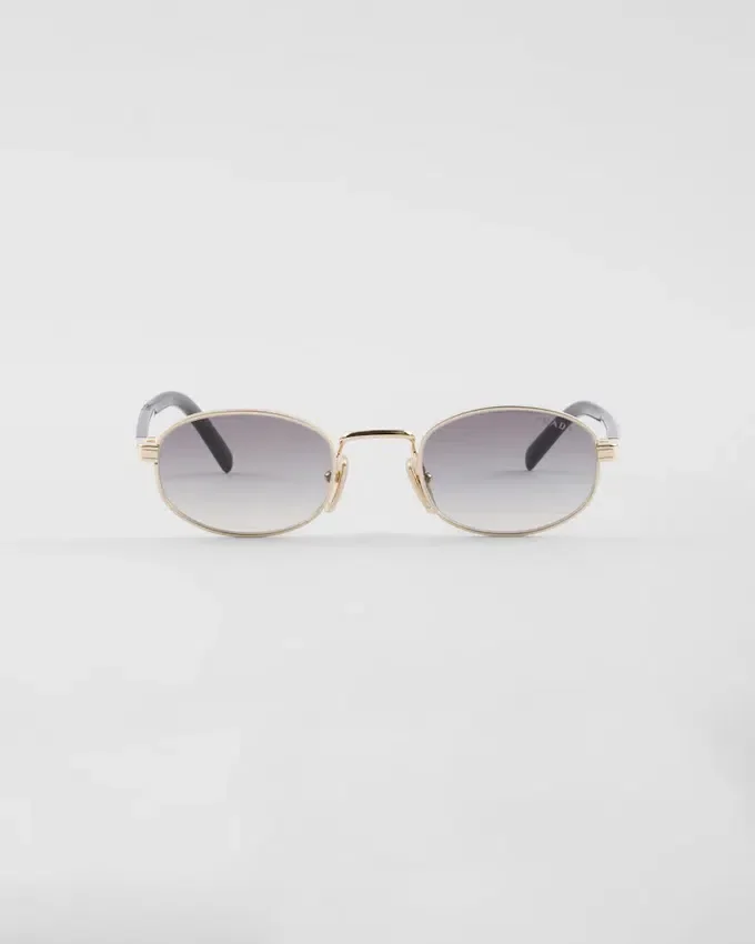 洗練されたモダンなスタイルのメタルサングラス。オーバル型のフロントと細身のテンプルが組み合わさり、繊細に刻印されたPradaのロゴが施された洗練されたメタルパーツが際立っています。