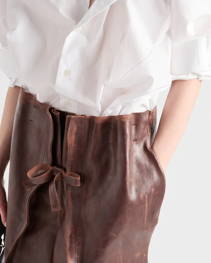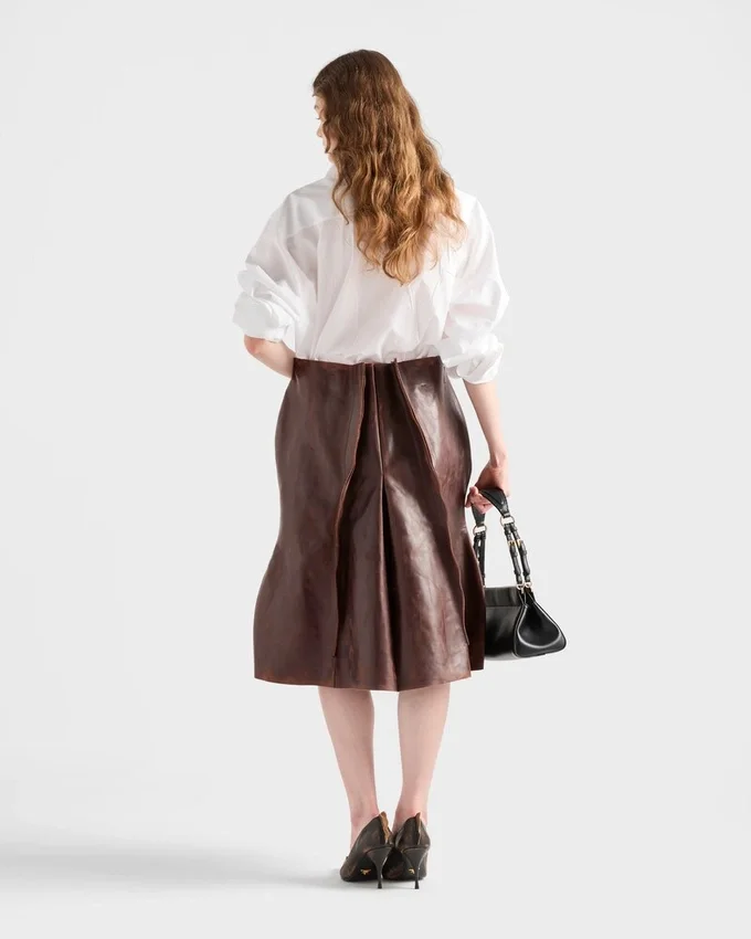 カジュアルなエレガンスを湛えたアセテート製サングラス。パントス型のフロントは洗練された三角形のリベットが特徴で、テンプルにはPRADAのレタリングロゴをあしらった象徴的なメタルプレートが施されています。
