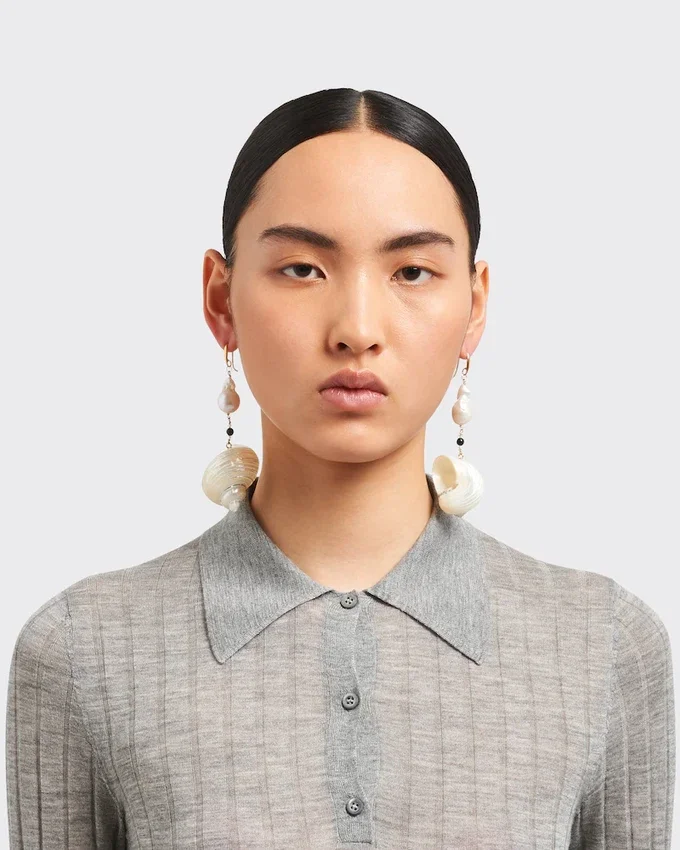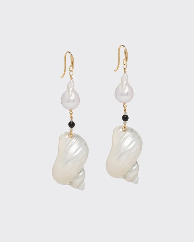 気品あるシンプルさ。時代を超えたエレガンスを放つこのシルバーイヤリングは、夏を彷彿とさせる貝殻で装飾されています。