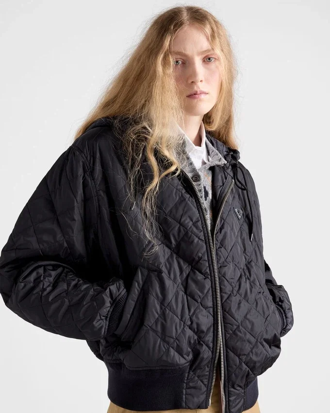 このカジュアルでありながら洗練されたジャケットは、キルティング柄をあしらった軽量なRe-Nylon素材で作られています。フード付きで、裾と袖口にはリブ編みを施したオーバーサイズのシルエットが特徴的です。 エナメル加工されたメタル製のトライアングルロゴが、このアイテムに独特の個性を添えています。製品の特徴を保ち、マイクロファイバーの抜け落ちを抑えるため、持続可能なケアとして、頻繁な洗濯は避けてください。使用後は毎回風通しの良い場所で乾かし、専門のエコドライクリーニング店でのクリーニングをお勧めします。