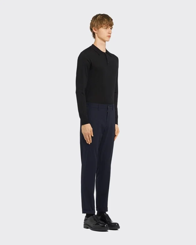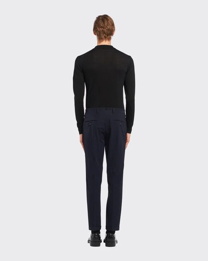 このストレートレッグの軽量テクニカルストレッチパンツは、技術的に革新的な生地と製造技術を通じて伝統的なシルエットを再解釈する、Pradaのノウハウと現代的なビジョンを反映しています。