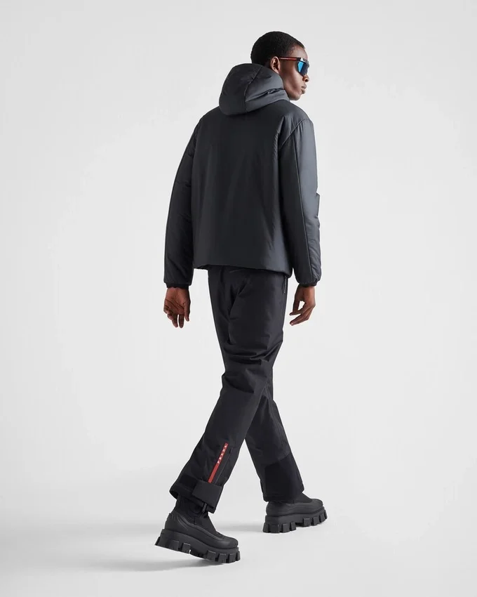 非常に軽量で肌触りの良いこのジャケットは、再生プラスチック素材から作られた極細のマイクロファイバー糸を使用した、コンパクトで軽量な防水生地であるライトポリエステルで作られています。 ワックス加工されたジッパーや伸縮性のあるドローストリングなど、機能的なディテールが満載です。ストレートなレギュラーフィットが特徴で、プラダ リネア・ロッサの象徴的なラテックスラバー製ロゴバッジがあしらわれています。Graphene®パディングは体温調節を助けます。暑い日には熱を放散し、寒い日には熱を均一に分散させて体温を安定させます。