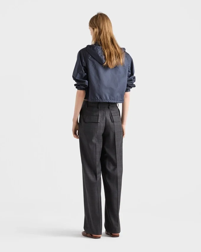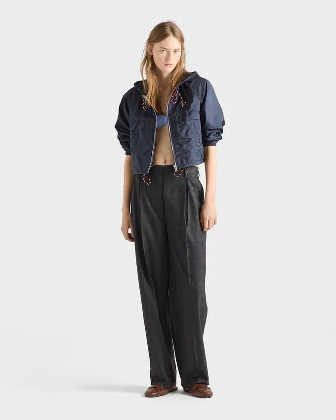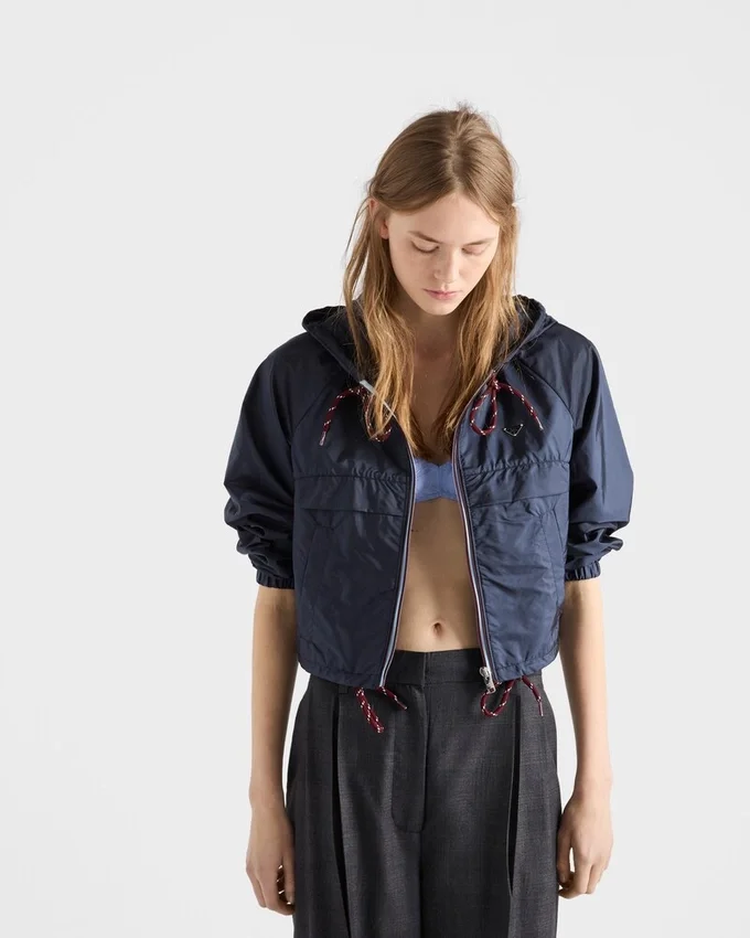 革新的なRe-Nylonを使用したこのショートジャケットは、テックウェアをライフスタイル分野に取り入れた現代のスポーツ界からインスピレーションを得ています。ボックスシルエットは、1913年にマリオ・プラダがデザインしたトランクスに初めて採用されて以来、ブランドを象徴するエナメル加工のメタルトライアングルロゴで彩られています。 製品の特徴を保ち、マイクロファイバーの抜け落ちを抑えるためのサステナブルなケアとして、頻繁な洗濯は避けてください。使用後は毎回風通しの良い場所で乾かし、ラベルに記載された洗濯表示に従ってください。