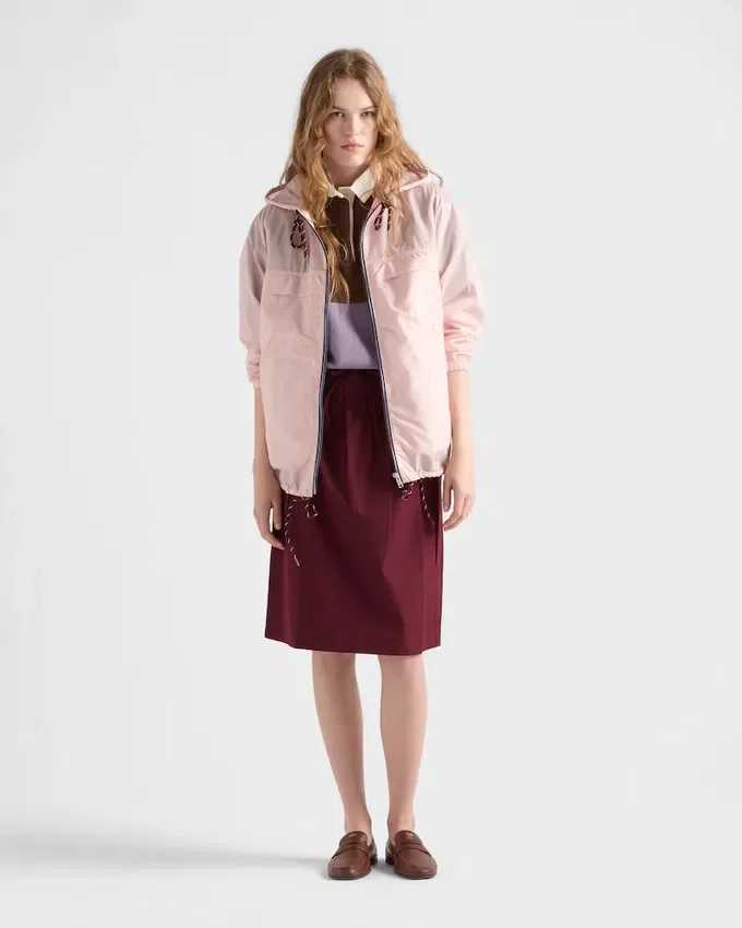 このRe-Nylonレインコートは、ミニマリズムと機能性を融合させた汎用性の高いデザインです。 フード付きの軽やかでダイナミックなシルエットは、スポーティーなディテールが際立ち、象徴的なトライアングルロゴがあしらわれています。製品の特徴を保ち、マイクロファイバーの抜け落ちを抑えるためのサステナブルなケアとして、頻繁な洗濯は避けてください。使用後は風通しの良い場所で乾かし、ラベルに記載された洗濯表示に従ってください。