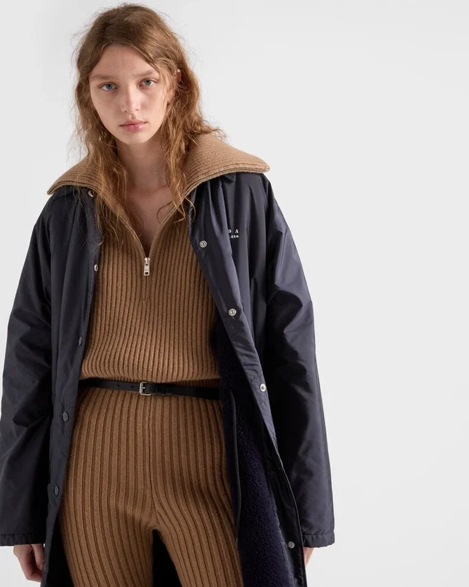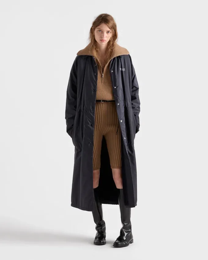 洗練されたラインと機能的なディテールが際立つこのレインコートは、革新的で多用途な特性を持つPradaの象徴的な生地、Re-Nylonで作られています。 軽やかなオーバーサイズのシルエットに、象徴的な幾何学模様のトライアングルロゴがあしらわれています。製品の特徴を保ち、マイクロファイバーの抜け落ちを抑えるためのサステナブルなケアとして、頻繁な洗濯は避けてください。使用後は風通しの良い場所で乾かし、専門のエコドライクリーニング店にてドライクリーニングを行ってください。