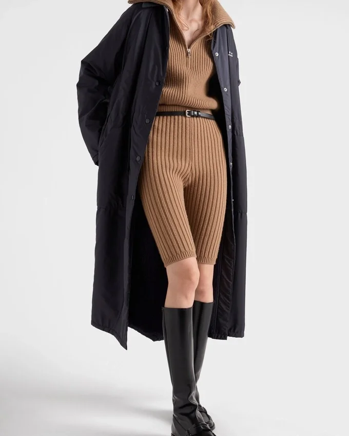 洗練されたラインと機能的なディテールが特徴のこのレインコートは、革新的で多用途な特性を持つPradaの象徴的な生地「Re-Nylon」で作られています。 軽やかなオーバーサイズのシルエットに、象徴的な三角形のロゴが幾何学的なモチーフとしてあしらわれています。製品の特徴を保ち、マイクロファイバーの抜け落ちを抑えるためのサステナブルなケアとして、頻繁な洗濯は避けてください。使用後は毎回風通しの良い場所で乾かし、専門のエコドライクリーニング店にてドライクリーニングを行ってください。