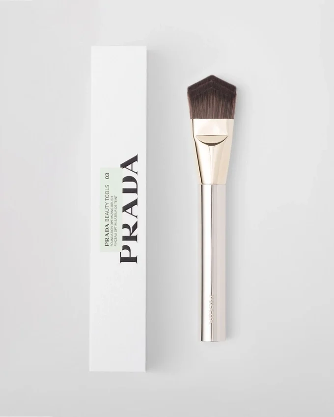 ファンデーション オプティマイジング ブラシは、革新的な3層構造の三角形デザインを採用し、柔軟性と最適なブレンド力を確保することで、完璧な肌仕上げを実現します。あらゆるリキッドファンデーションのテクスチャーを均一に広げ、カバー力を調整可能です。パッケージには、ブラシを保護するためのベルベットのポーチが付属しています。Prada.comおよび一部の取扱店でのみ販売されています。